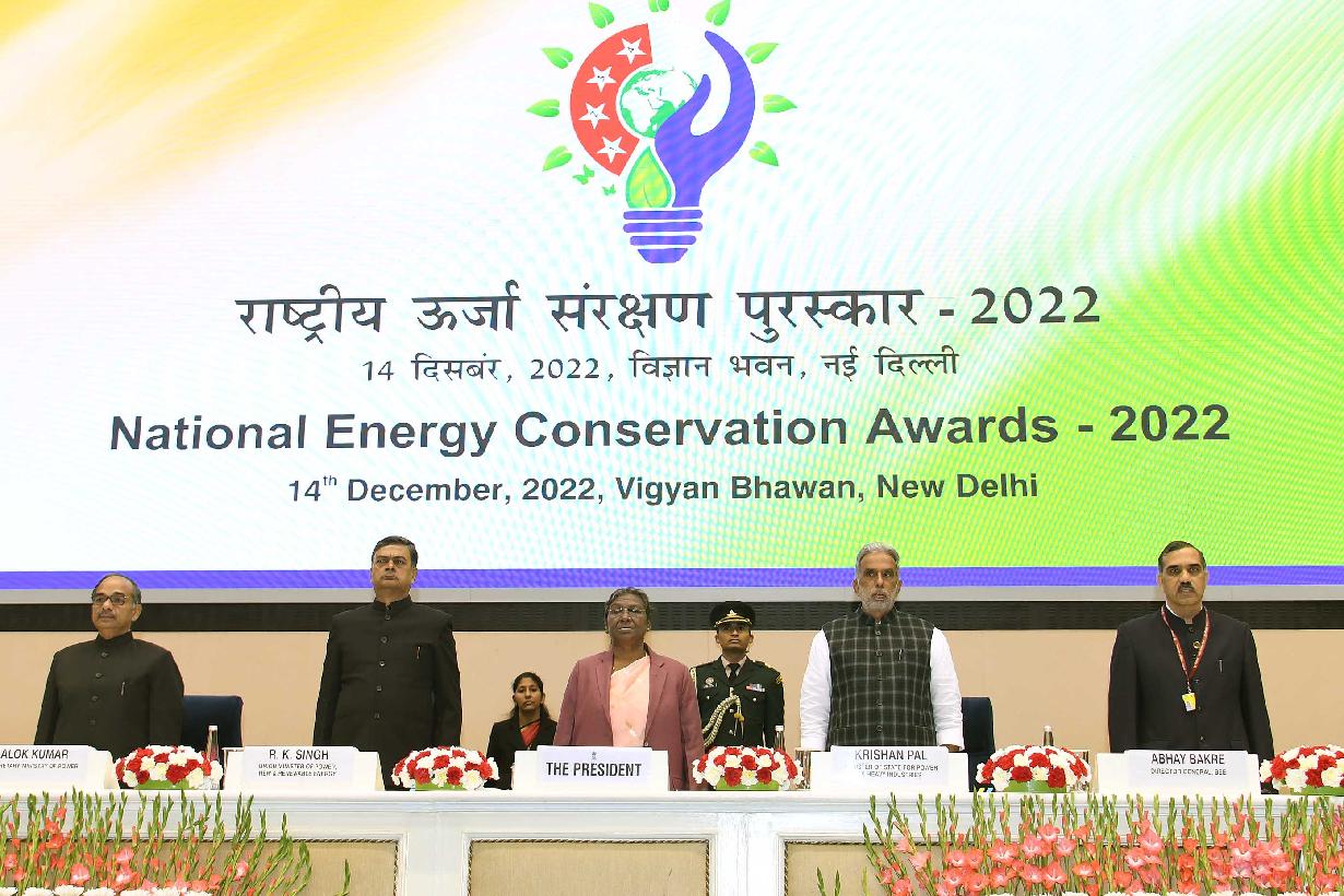 | Caption: | The President of India, Smt. Droupadi Murmu presented National Energy Conservation Awards, National Energy Efficiency Innovation Awards and National Painting Competition prizes, on the occasion of National Energy Conservation Day, in New Delhi on December 14, 2022. |