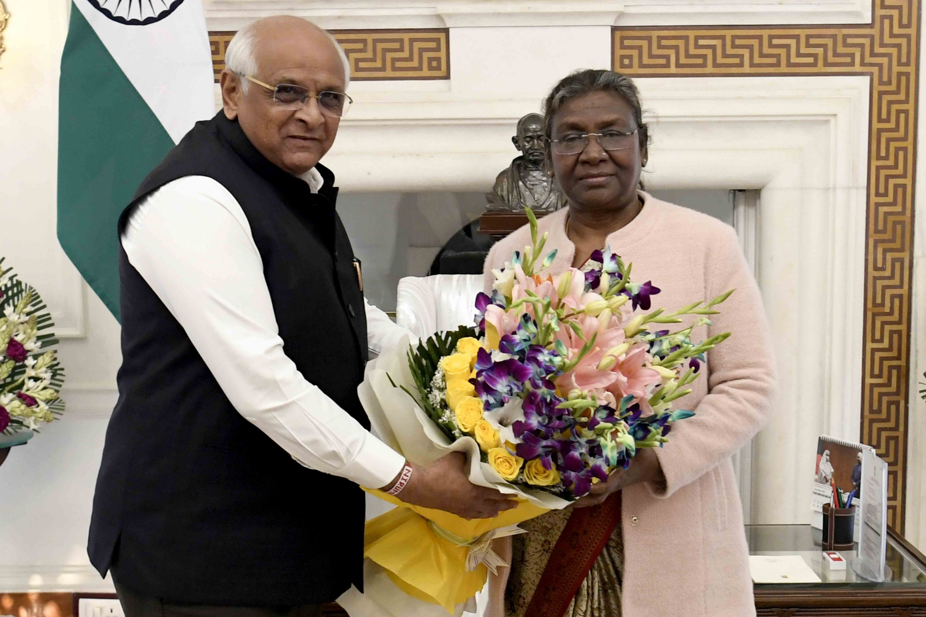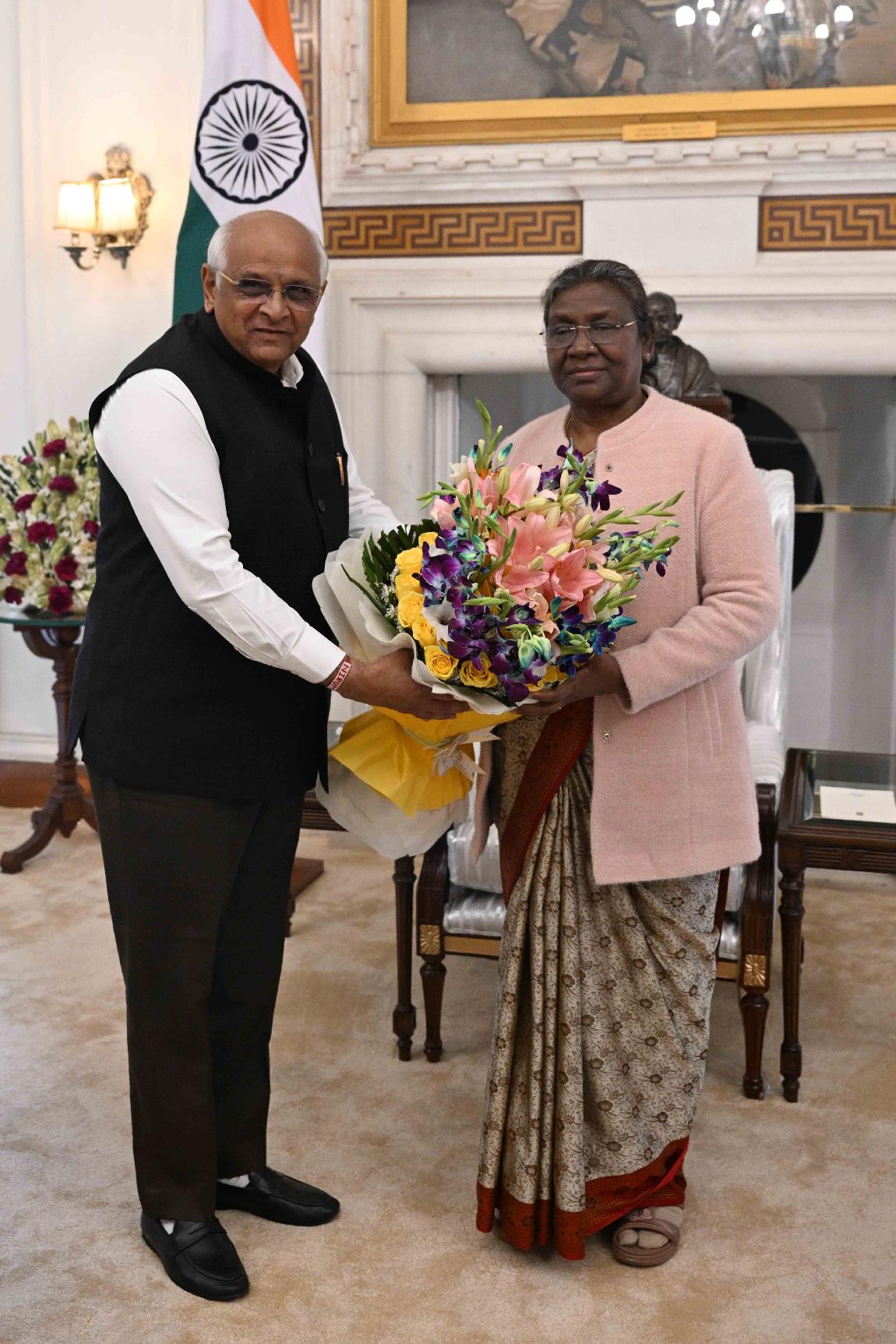 | Caption: | The Chief Minister of Gujarat, Shri Bhupendra Patel calling on the President of India, Smt. Droupadi Murmu, at Rashtrapati Bhavan on December 21, 2022. |