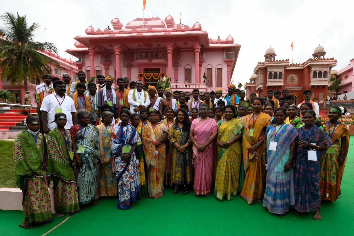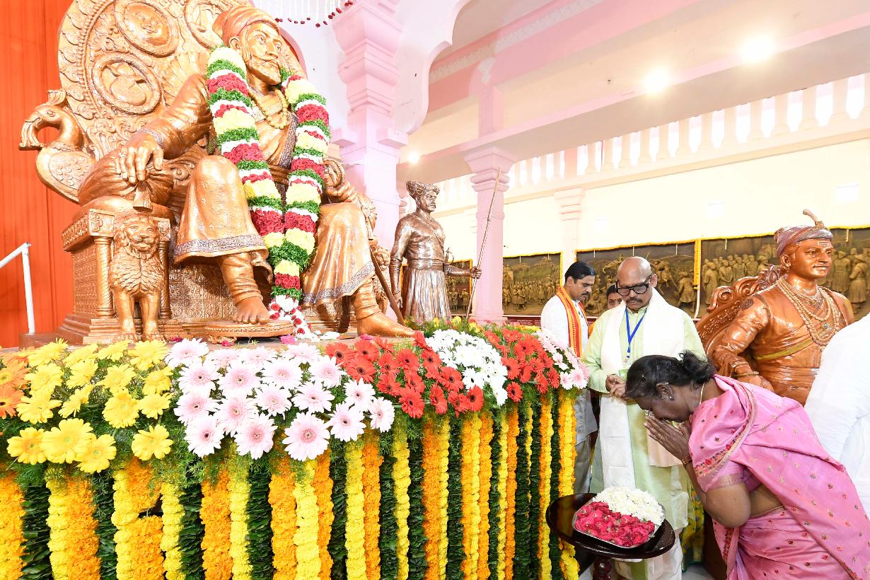| Caption: | The President of India, Smt. Droupadi Murmu paid floral tributes to Chhatrapati Shivaji Maharaj at Shivaji Spoorthy Kendram, Srisailam on December 26, 2022. The President also interacted with women, men and children of Chenchu Tribal Community. |