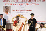 | Caption: | The President of India, Smt. Droupadi Murmu addressed the students and faculty members of the Keshav Memorial Educational Society, in Hyderabad on December 27, 2022. The President inaugurated a photo exhibition on 'Hyderabad Liberation Movement' showcasing contributions of regional freedom fighters. |