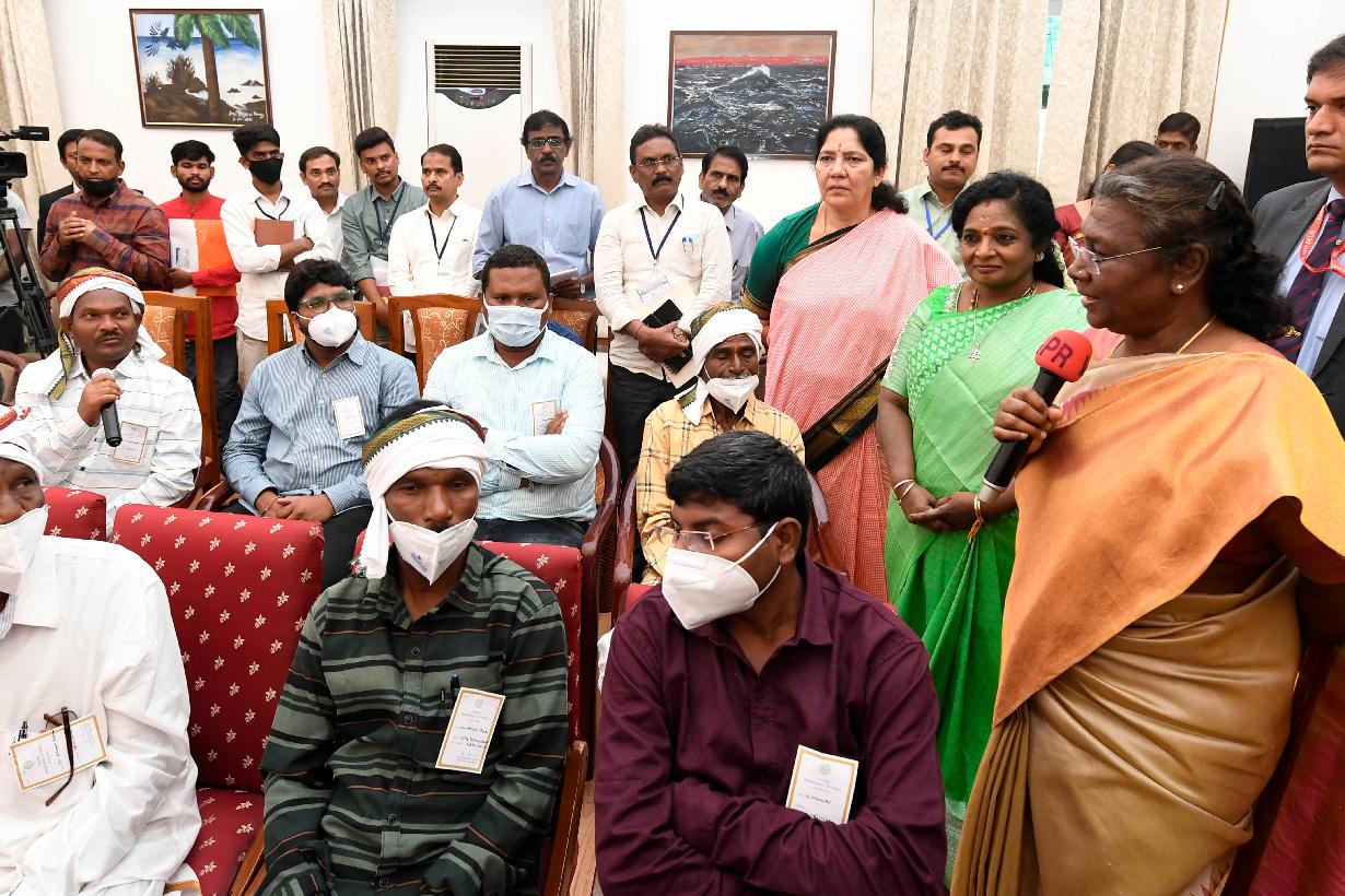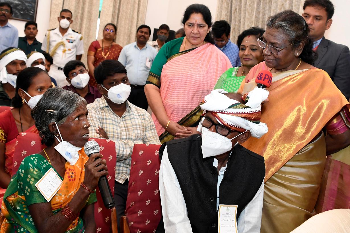 | Caption: | The President of India, Smt. Droupadi Murmu interacted with Particularly Vulnerable Tribal Groups (PvTGs) of Telangana, at Rashtrapati Nilayam, Secunderabad on December 29, 2022. |
