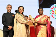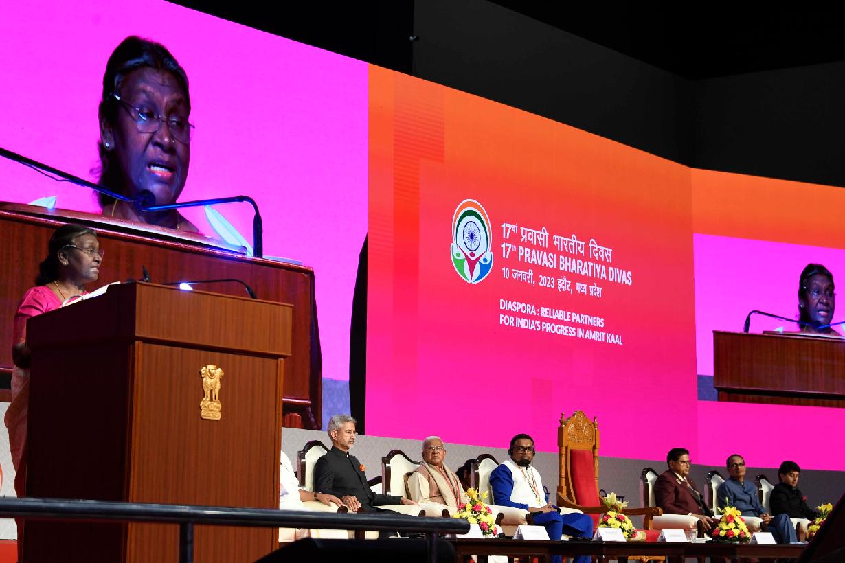 | Caption: | The President of India, Smt. Droupadi Murmu addressed the valedictory session of the 17th Pravasi Bharatiya Divas Convention and conferred Pravasi Bhartiya Samman Awards, at Indore, in Madhya Pradesh on January 10, 2023. |