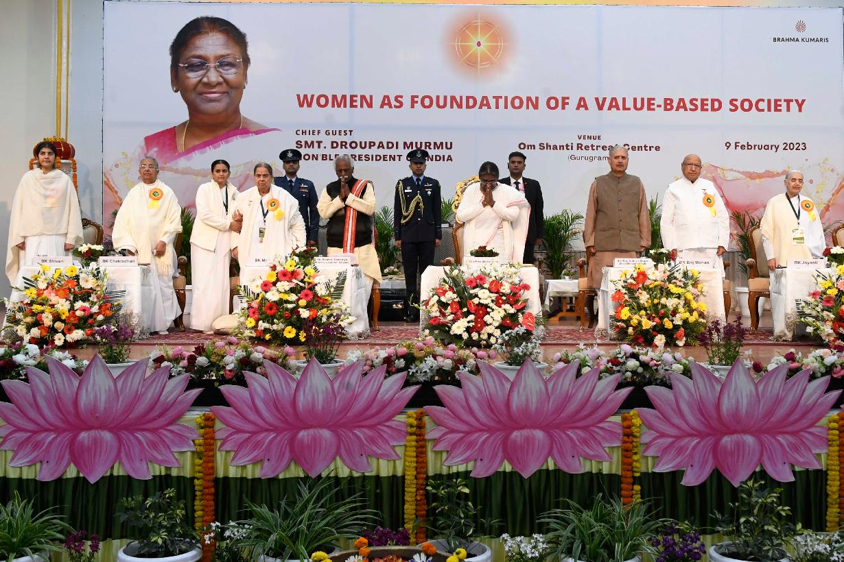 | Caption: | The President of India, Smt. Droupadi Murmu inaugurated a National Convention on 'Women as Foundation of Value-based Society' and launched an all India awareness campaign 'Empowering the Family' at the Om Shanti Retreat Centre of Brahmakumaris, at Gurugram on February 09, 2023. |