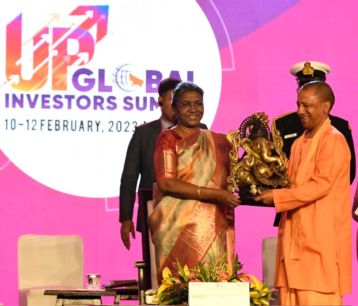 | Caption: | The President of India, Smt. Droupadi Murmu graced the Valedictory Session of UP Global Investors Summit 2023, in Lucknow on February 12, 2023. |