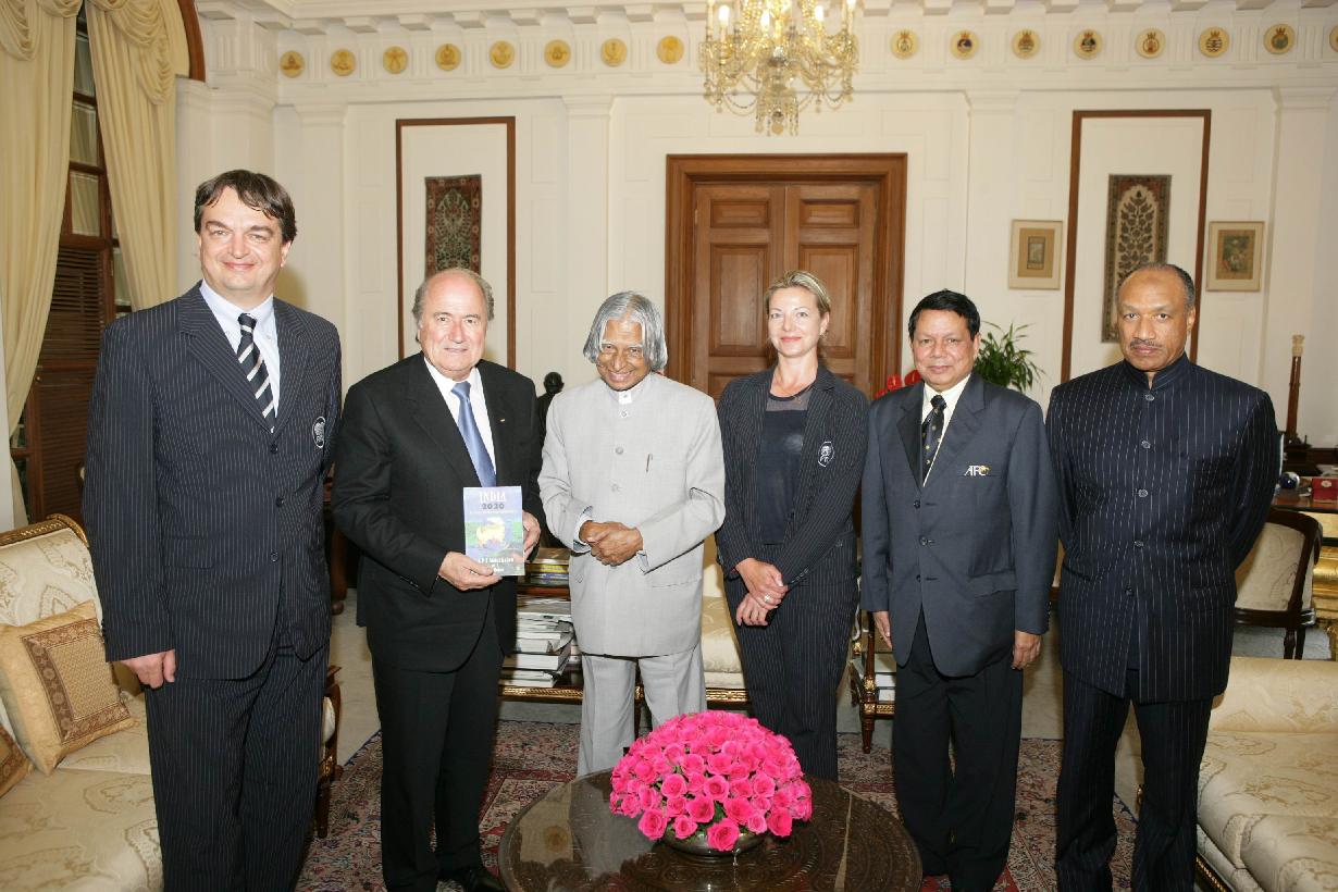| Caption: | The President of Federation of International Football Association (FIFA), Mr Joseph Sepp Blatter and others calling on the President of India, Dr A P J Abdul Kalam at Rashtrapati Bhavan in New Delhi on April 16, 2007 |