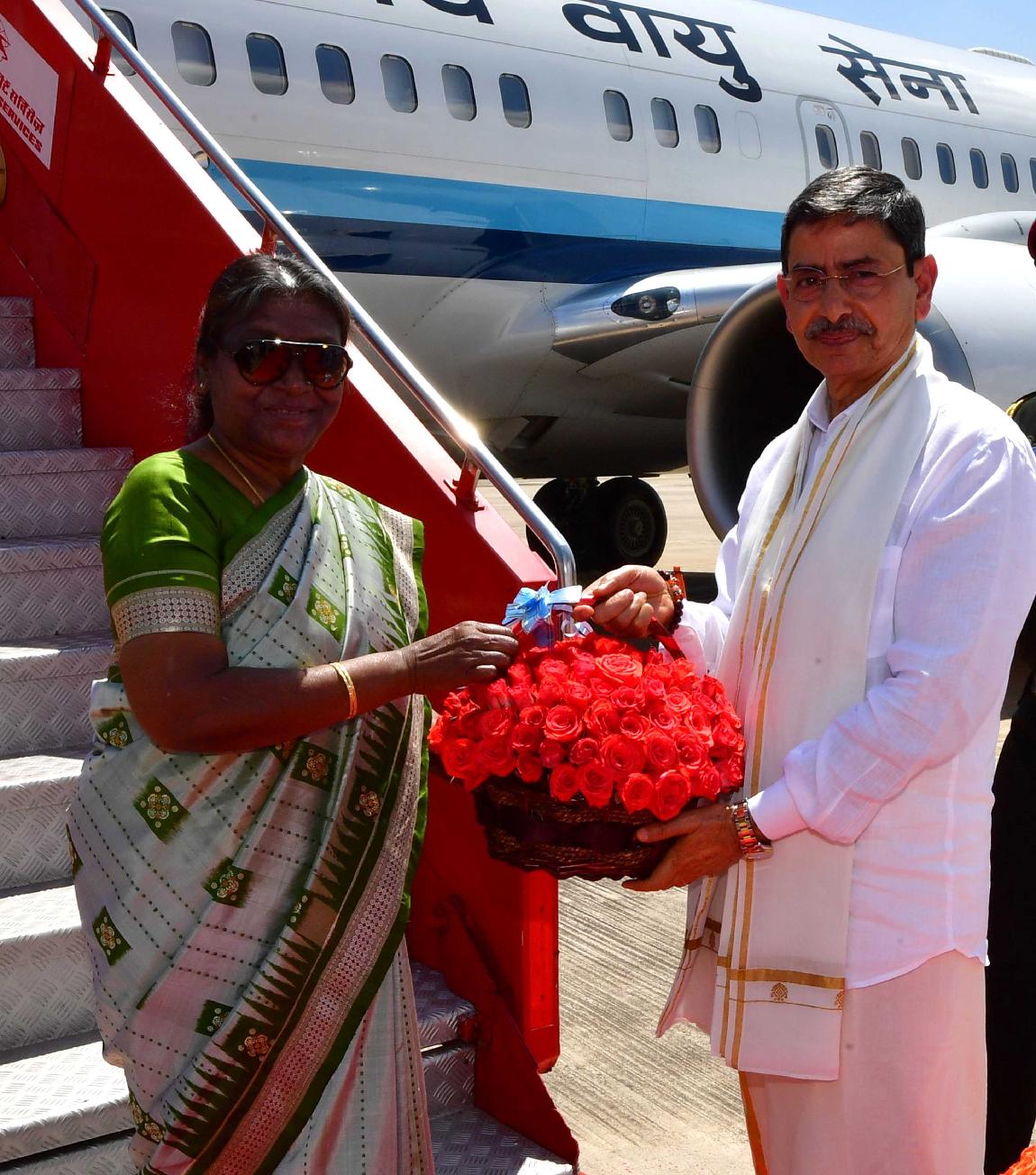 | Caption: | The Governor of Tamil Nadu, Shri R.N. Ravi received the President of India, Smt. Droupadi Murmu on her arrival, in Madurai on February 18, 2023. |