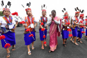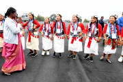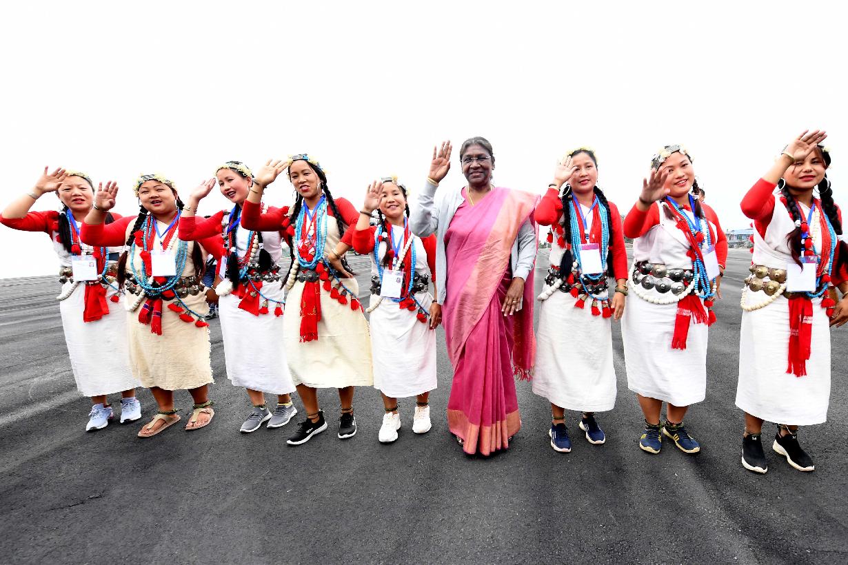 | Caption: | The President of India, Smt. Droupadi Murmu was given a warm traditional welcome by members of Adi, Nyishi, Apatani, Aka, Miji, Nocte, Wancho and other tribes, on her arrival, at Itanagar on February 20, 2023. |