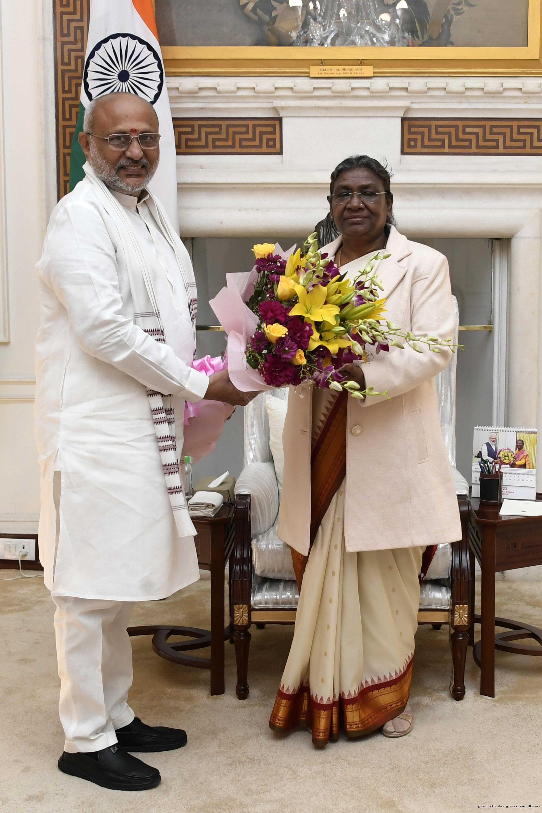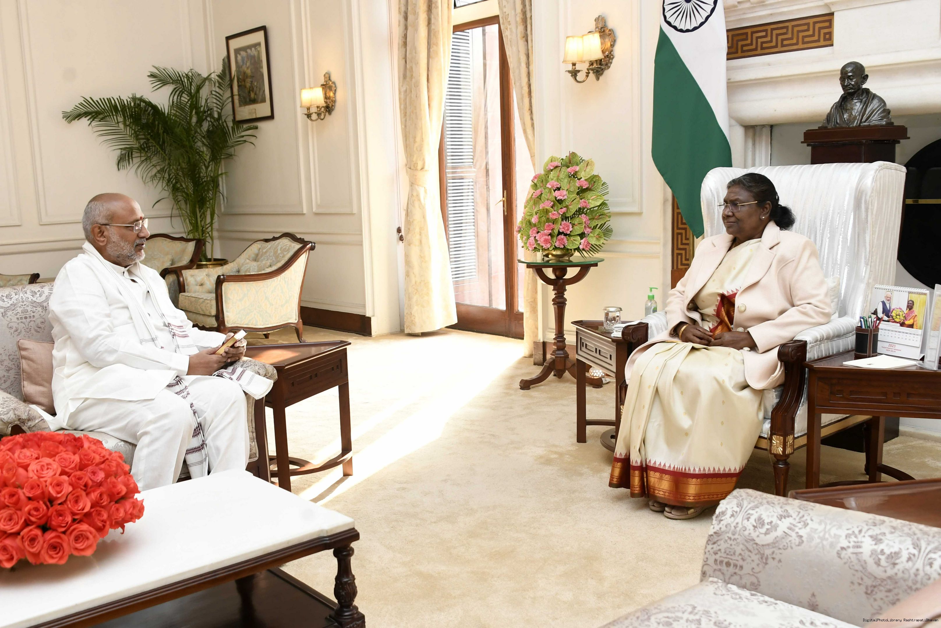 | Caption: | The Governor of Jharkhand, Shri C.P. Radhakrishnan called on the President of India, Smt. Droupadi Murmu, at Rashtrapati Bhavan on February 25, 2023. |