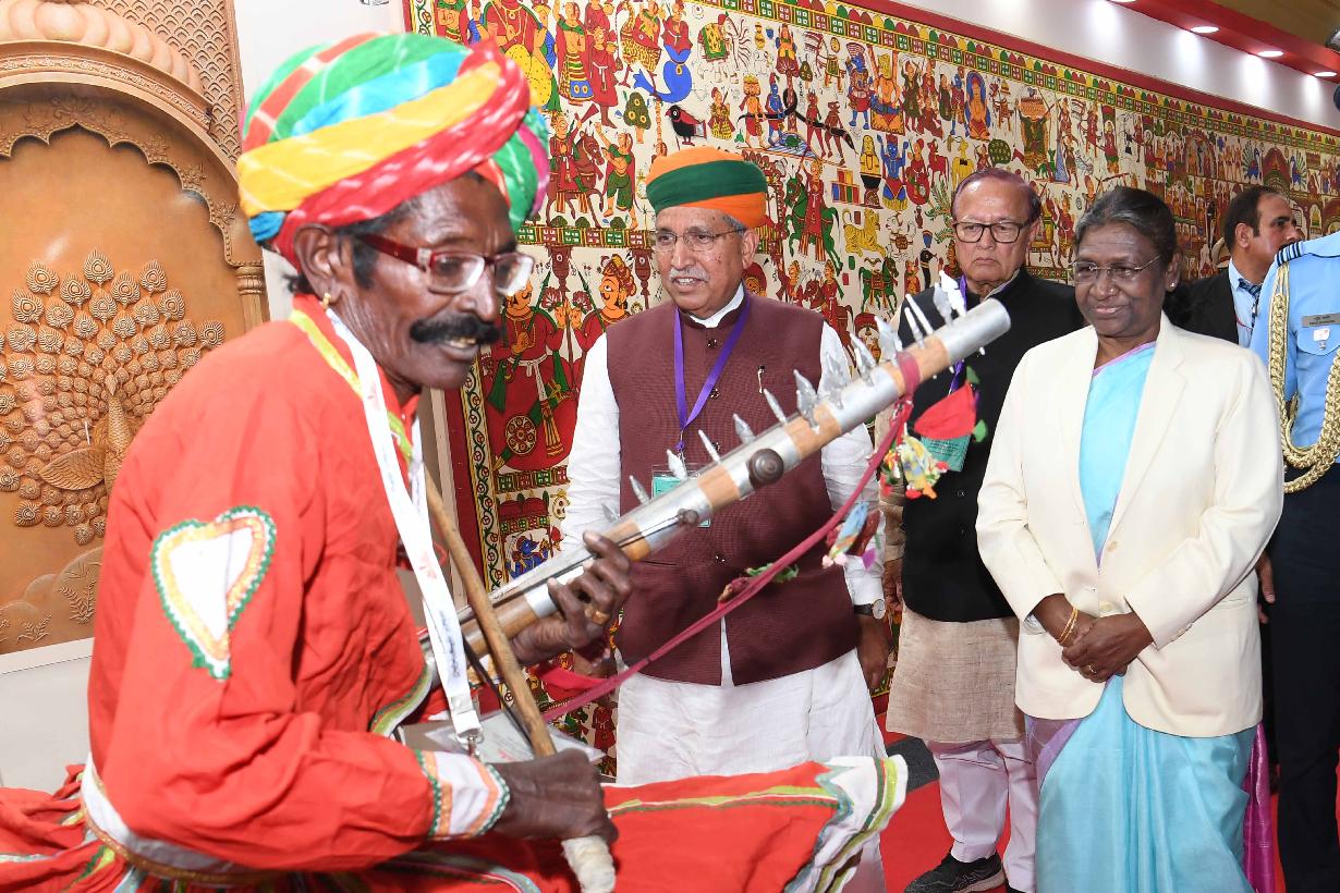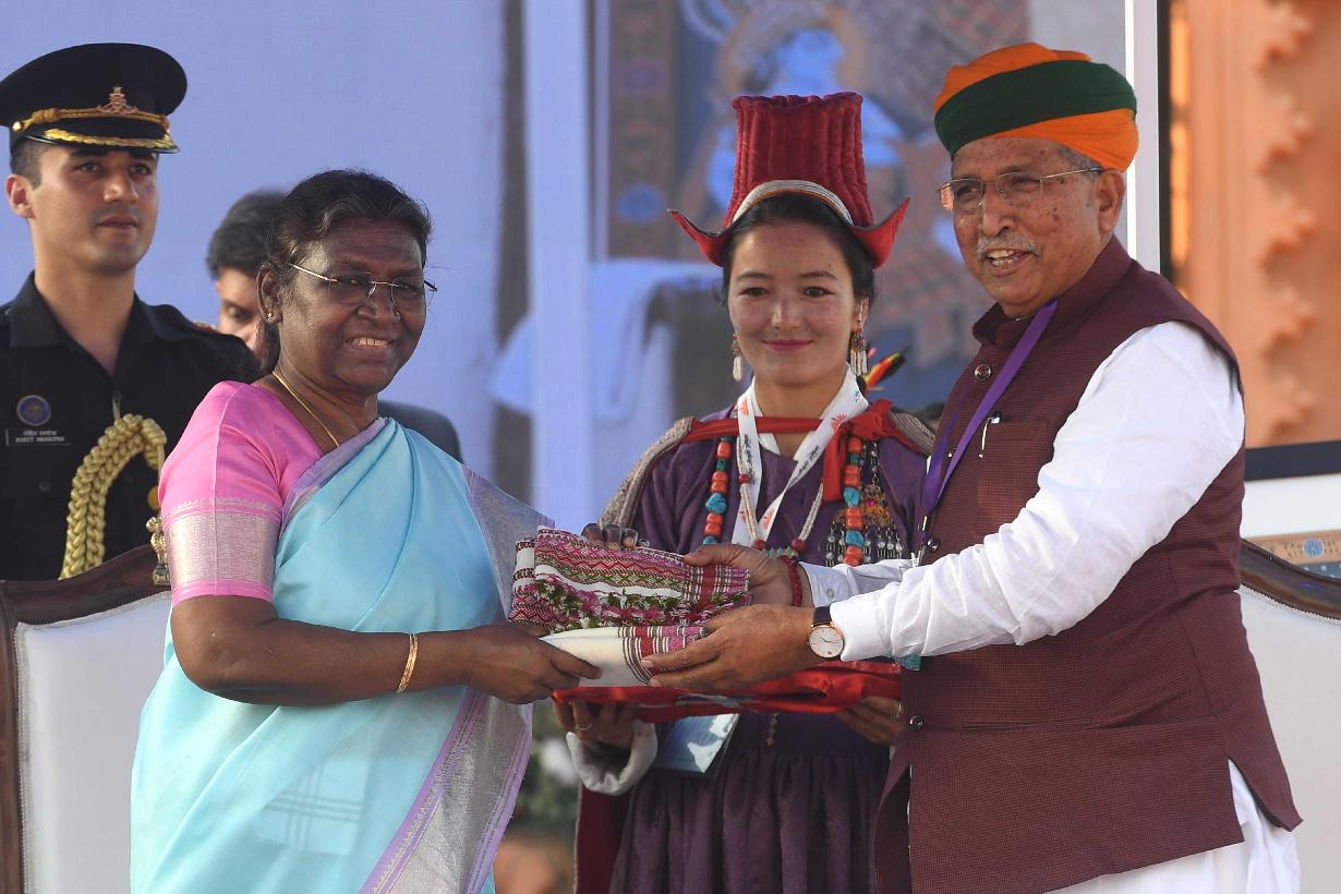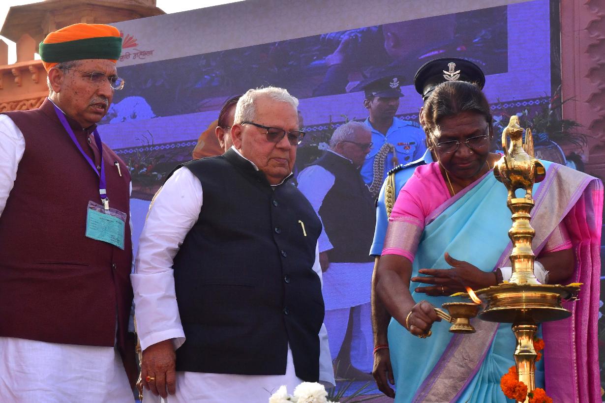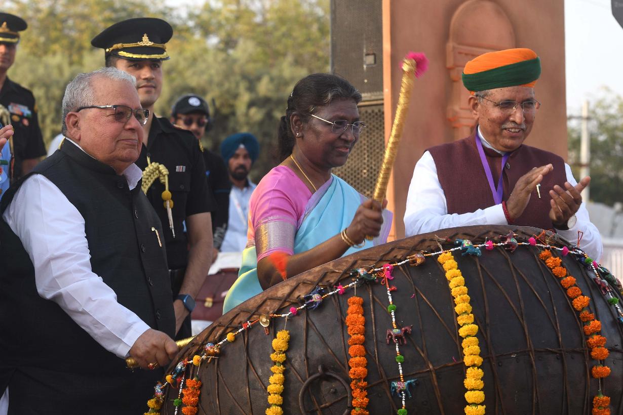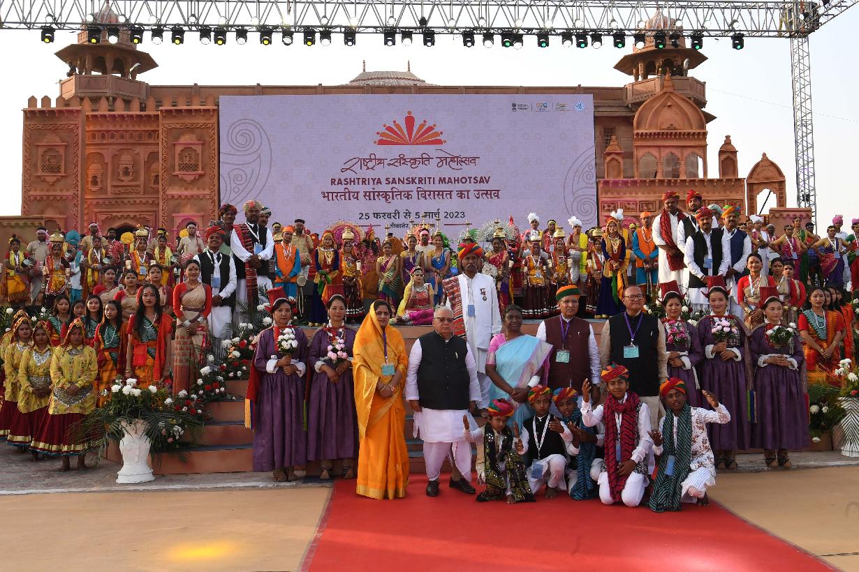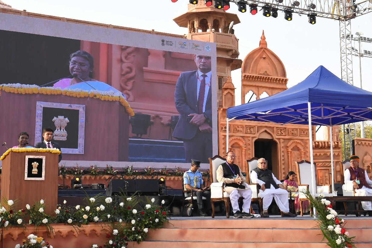 | Caption: | The President of India, Smt. Droupadi Murmu graced the 14th Rashtriya Sanskriti Mahotsav, at Bikaner, in Rajasthan on February 27, 2023. |