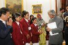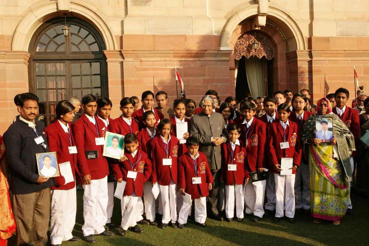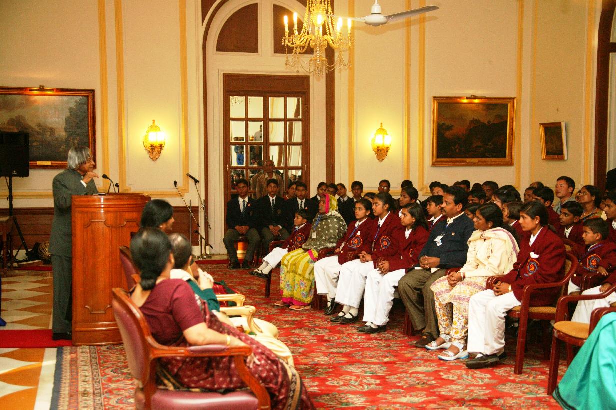 | Caption: | The President of India, Dr A P J Abdul Kalam meeting with the National Bravery Awards winning Children alongwith their Escorts and Officials of the Indian Council for Child Welfare at the Yellow Drawing Room of Rashtrapati Bhavan in New Delhi on Jan 23, 2007 |
