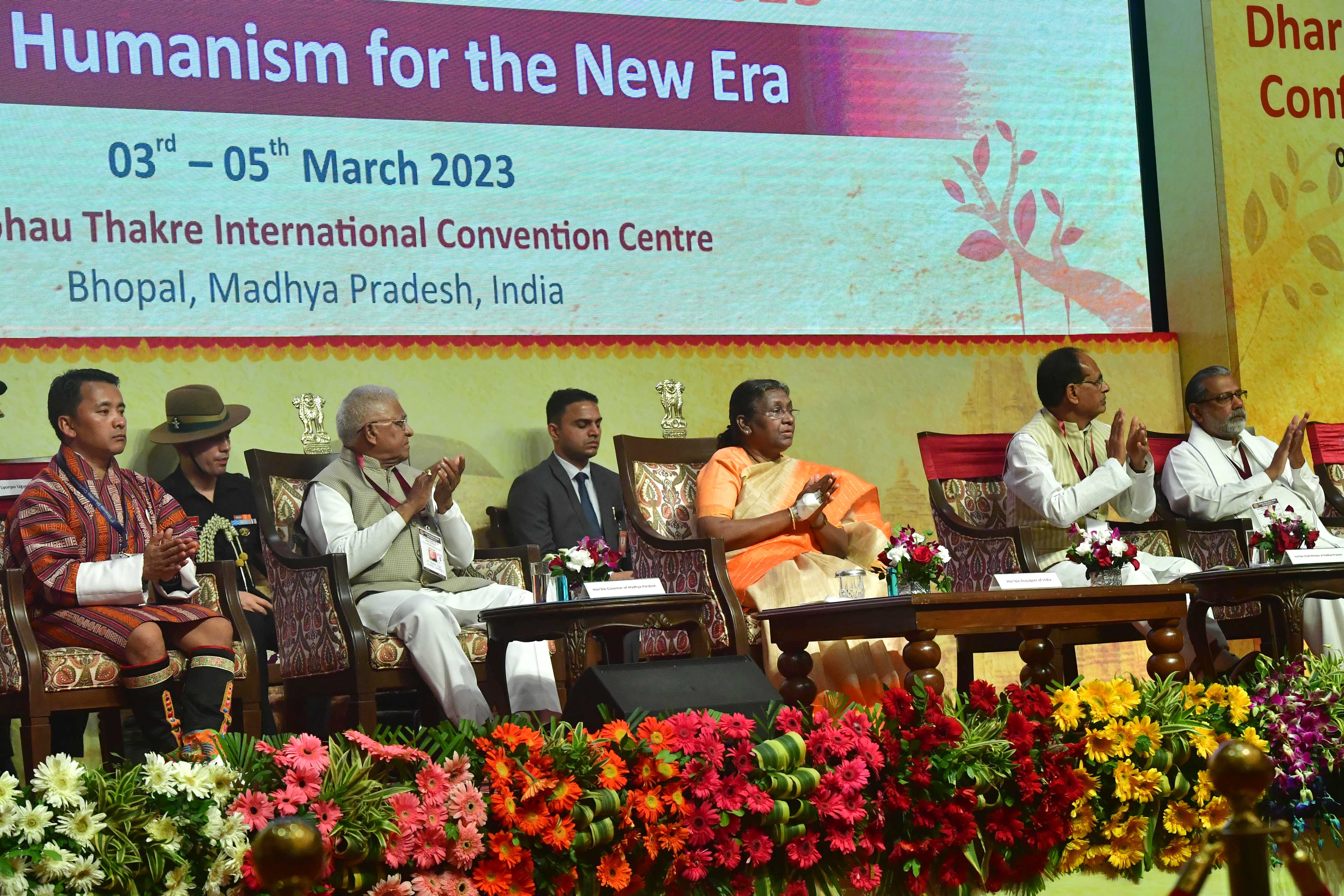 | Caption: | The President of India, Smt Droupadi Murmu inaugurated the 7th International Dharma Dhamma Conference, organised by the India Foundation at Bhopal March 3, 2023 |