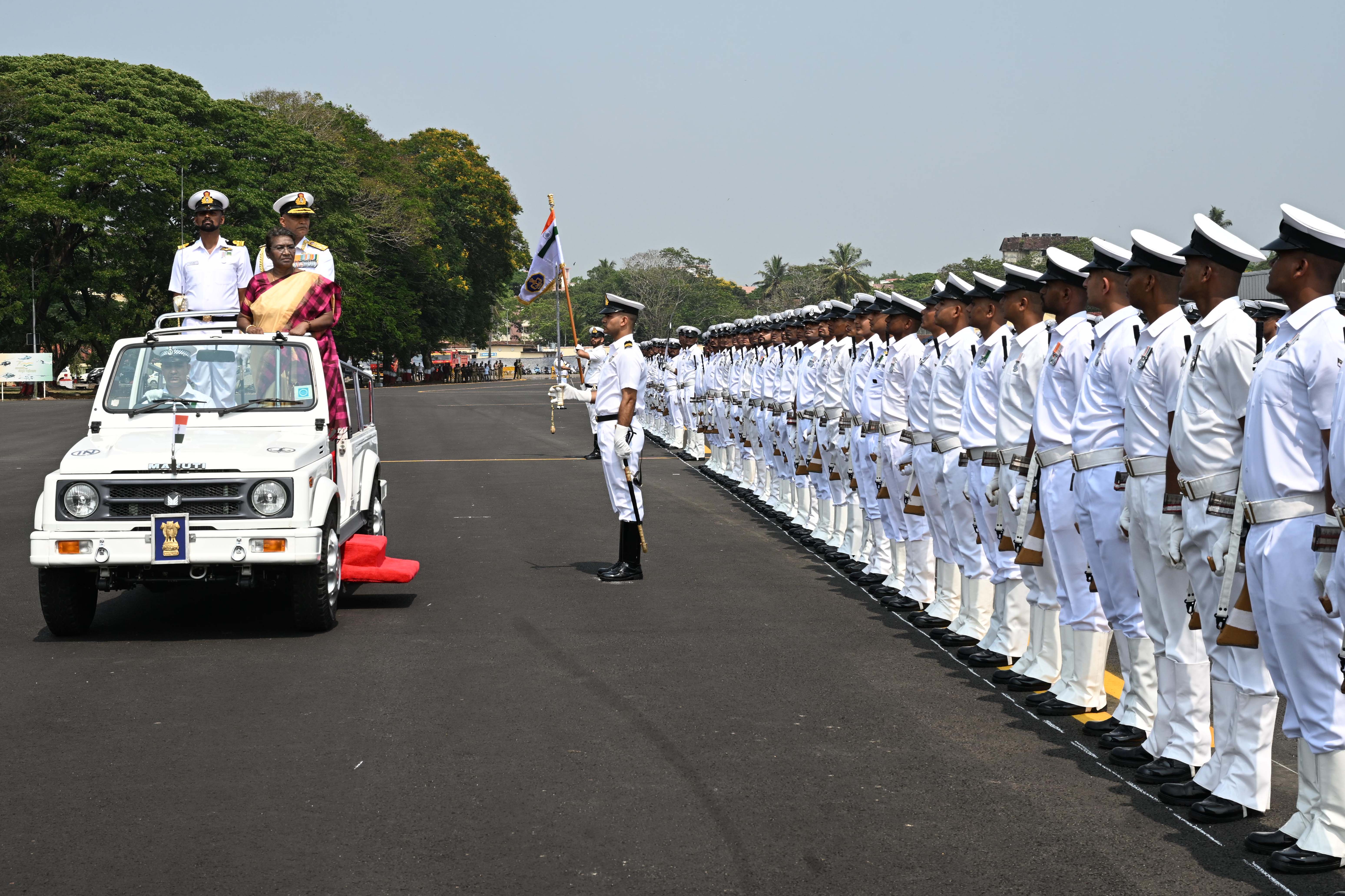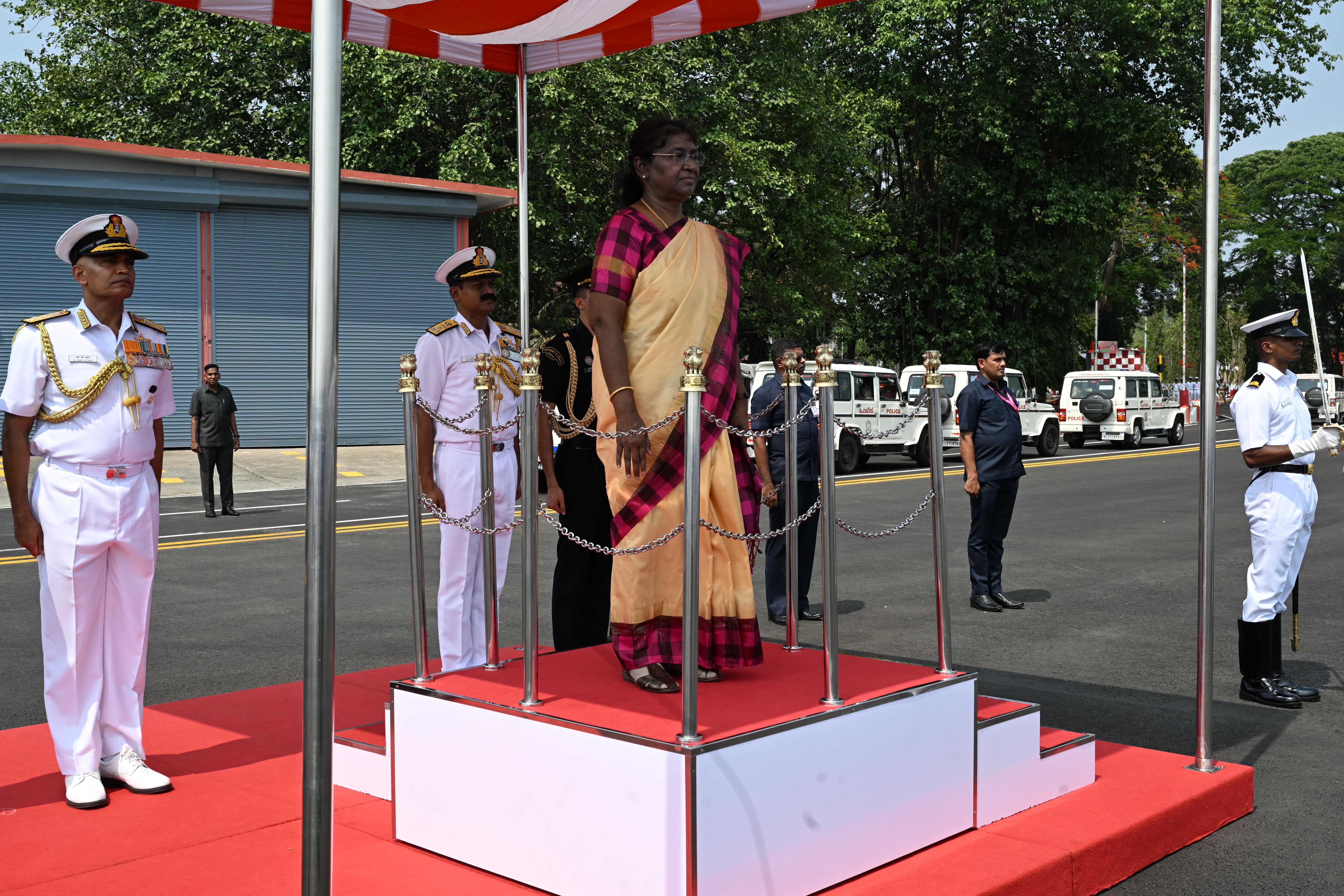 | Caption: | The President of India, Smt. Droupadi Murmu was accorded a guard of honour on her arrival at Kochi on March 16, 2023. |