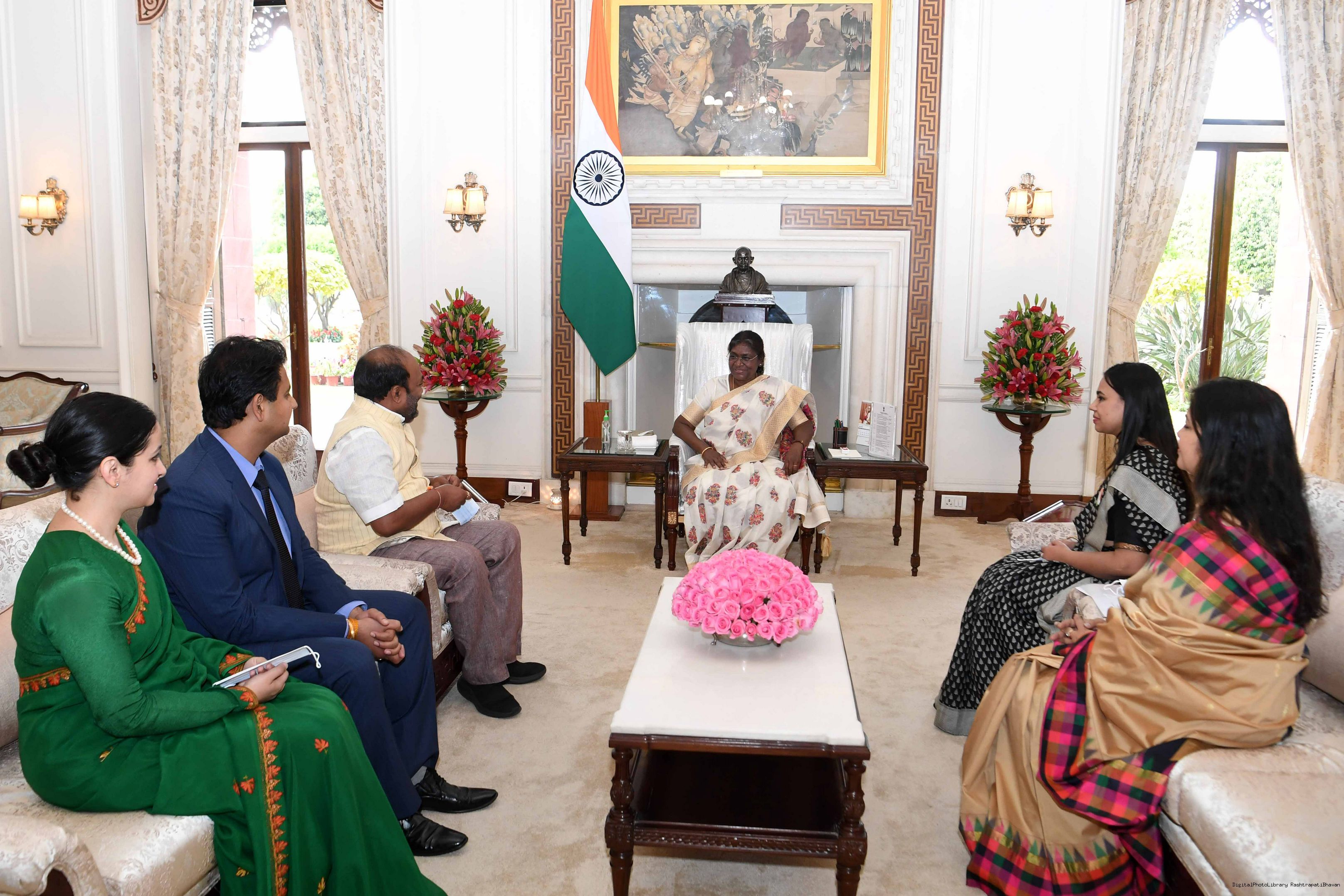 | Caption: | Shri Vinay Dinu Tendulkar, MP (RS) along with Ms. Mansi Mathur, Shri Rachit Kumar his wife Smt. Kashmira Kumar and Ms. Nit Agarwal meeting with the President of India Smt. Droupadi Murmu at Rashtrapati Bhavan on March 29, 2023 |