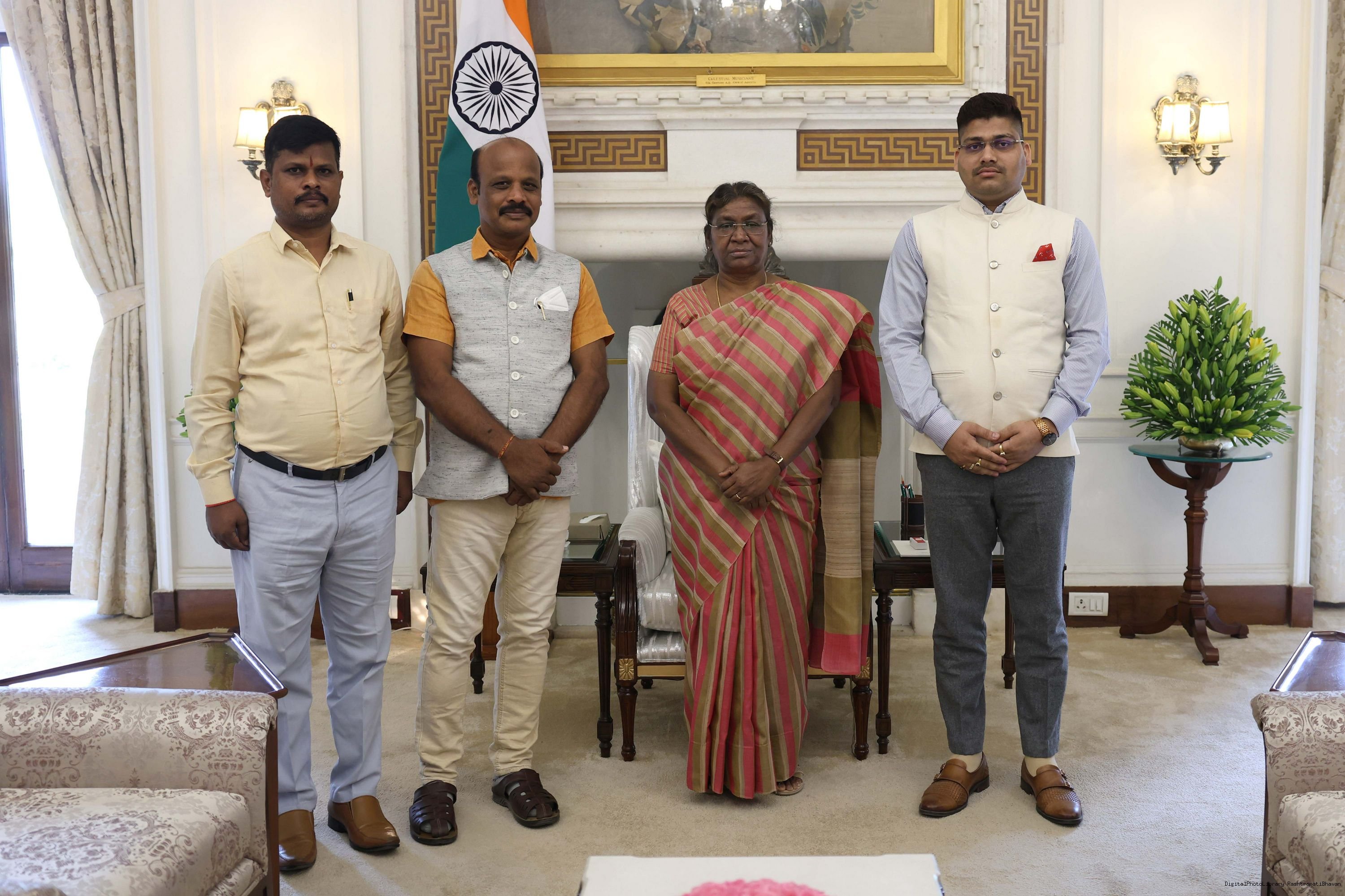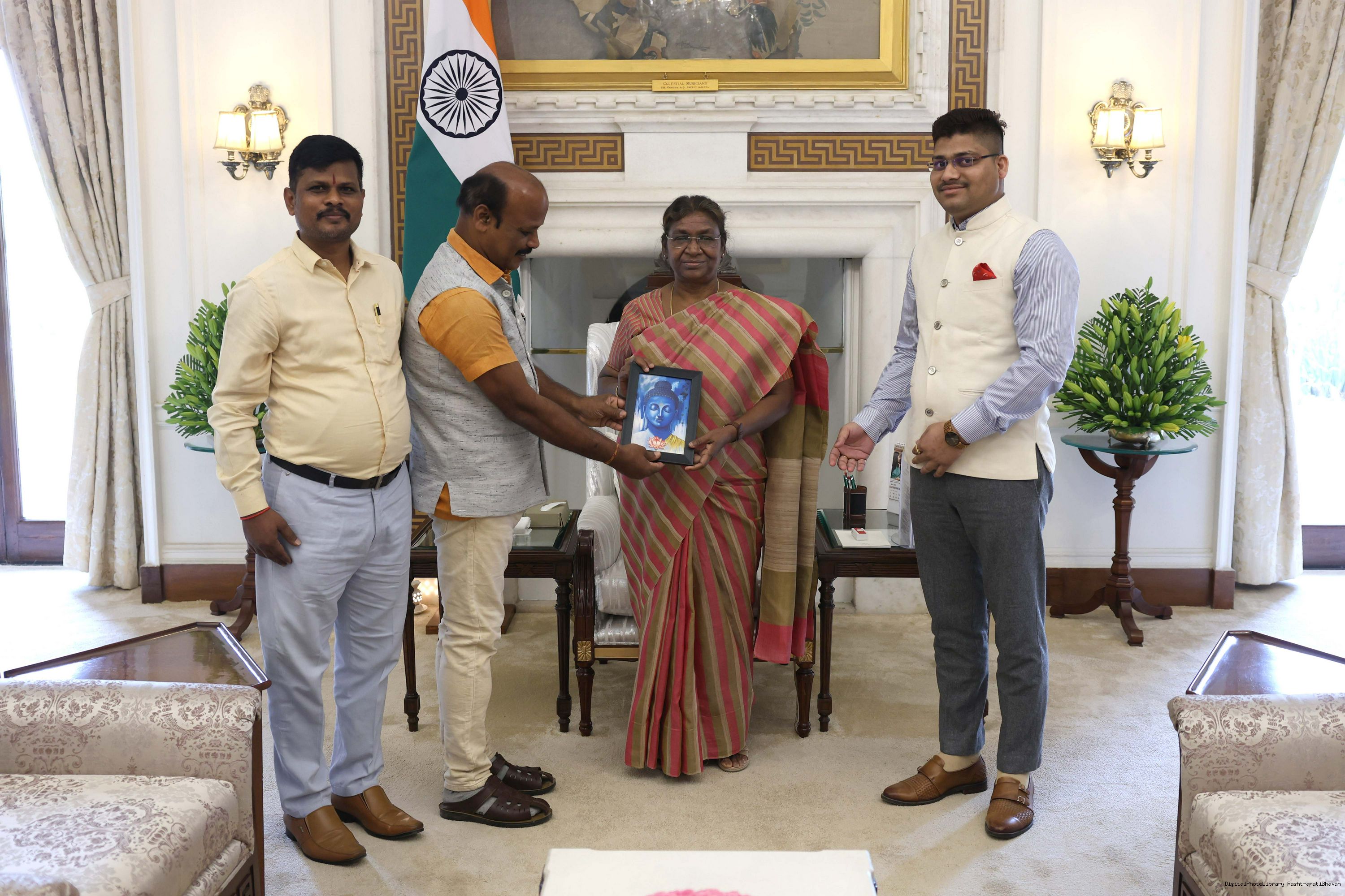 | Caption: | Shri Uma Charan Pradhan, former RSS Pracharak, Odisha and former Zilla Savapati, BJP along with others meeting with the President of India Smt. Droupadi Murmu at Rashtrapati Bhavan on April 11, 2023. |