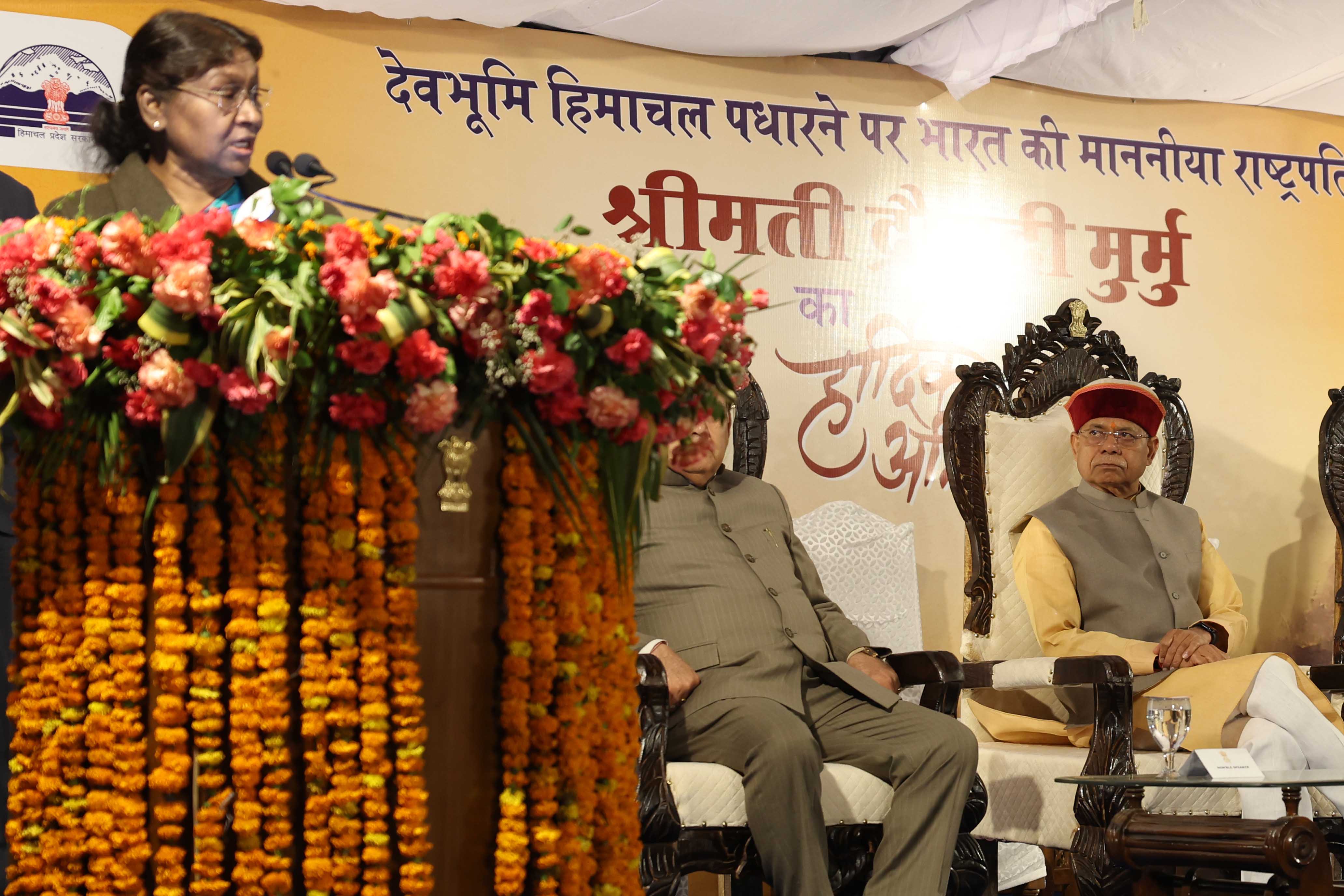| Caption: | The President of India, Smt Droupadi Murmu attending the civic reception hosted in her honour by the Government of Himachal Pradesh at Raj Bhavan, Shimla on April 18, 2023. |