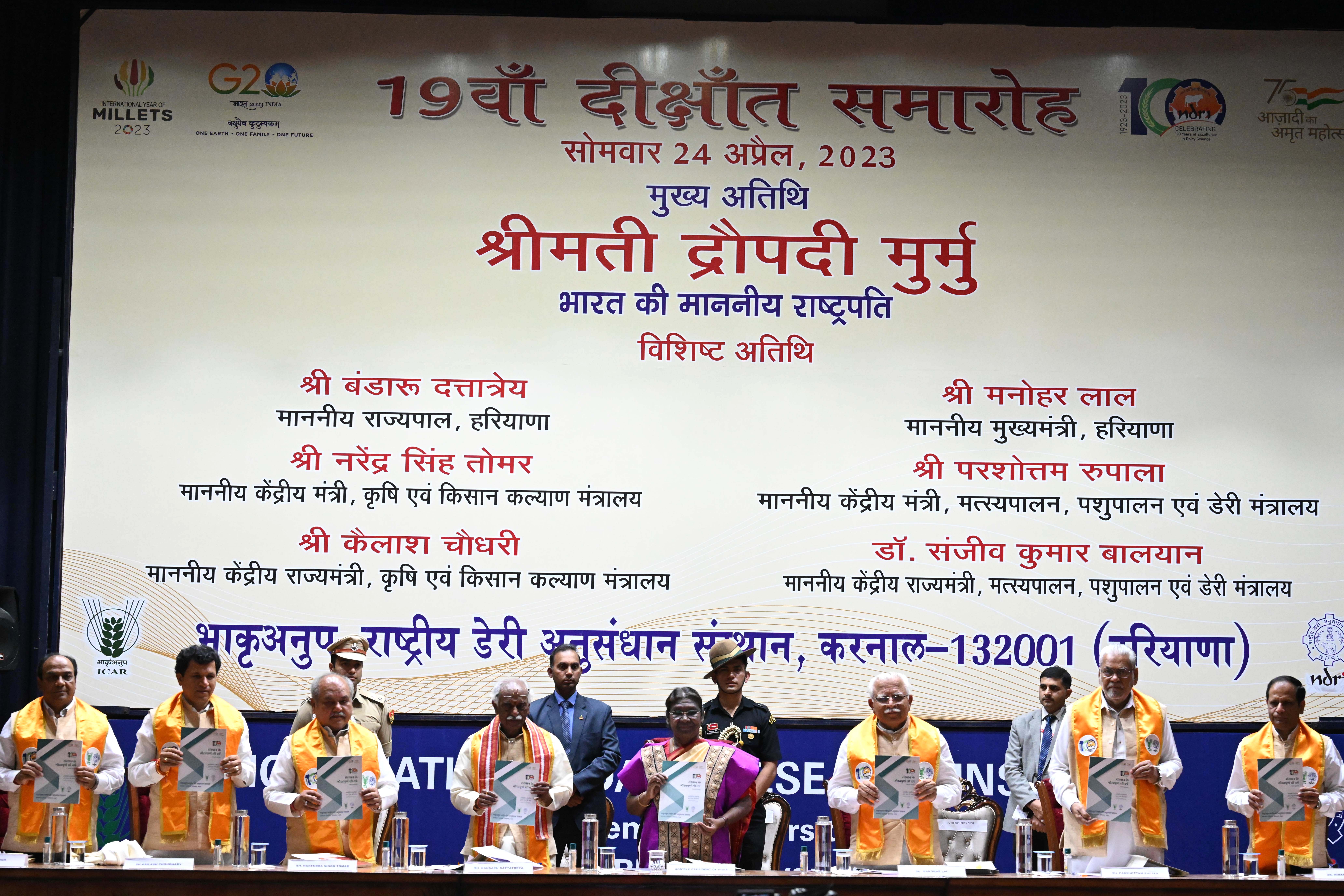 | Caption: | The President of India, Smt Droupadi Murmu graced the 19th convocation of the Indian Council of Agricultural Research - National Dairy Research Institute at Karnal, Haryana on April 24, 2023 |