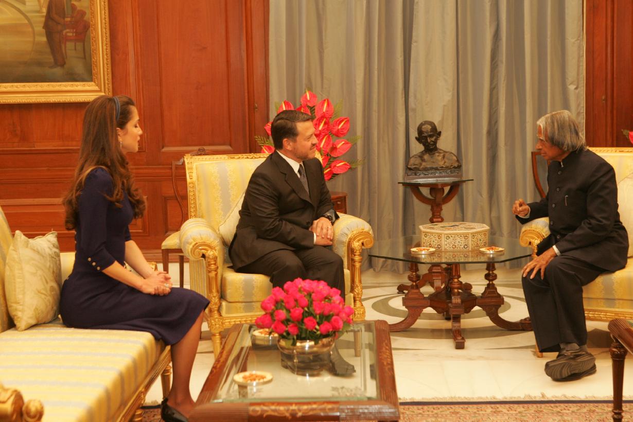 | Caption: | The King of Jordan, His Majesty King Abdullah II Bin Al-Hussein and Her Majesty Queen Rania Al Abdullah calling on the President of India, Dr A P J Abdul Kalam at the North Drawing Room of Rashtrapati Bhavan in New Delhi on Dec 01, 2006 |