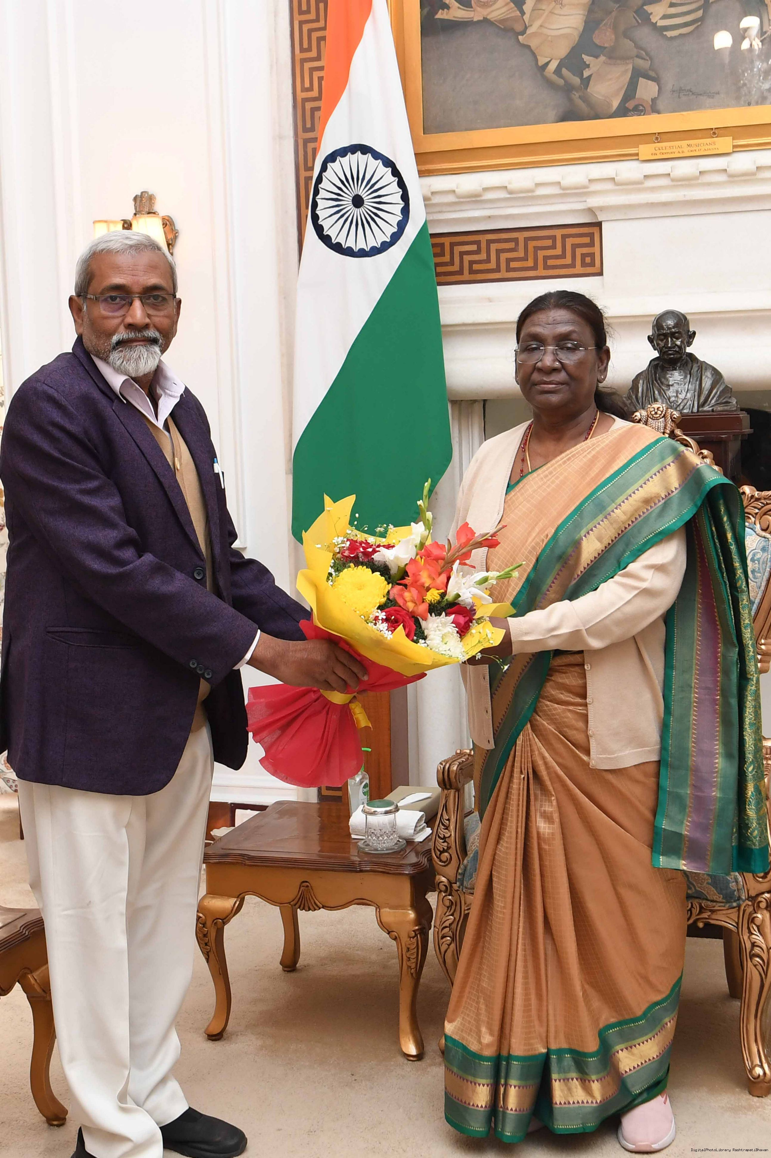 | Caption: | Shri Radha Shyam Jena, Advocate, Supreme Court of India meeting with the President of India, Smt Droupadi Murmu at Rashtrapati Bhavan on December 28, 2023. |