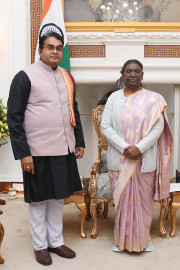 | Caption: | Prof. Bhagirathi Nadna, Deptt of Sahitya, Shri Lal Bahadul Shastri National Sanskrit University New Delhi meeting with the President of India, Smt. Droupadi Murmu at Rashtrapati Bhavan on January 5, 2024. |