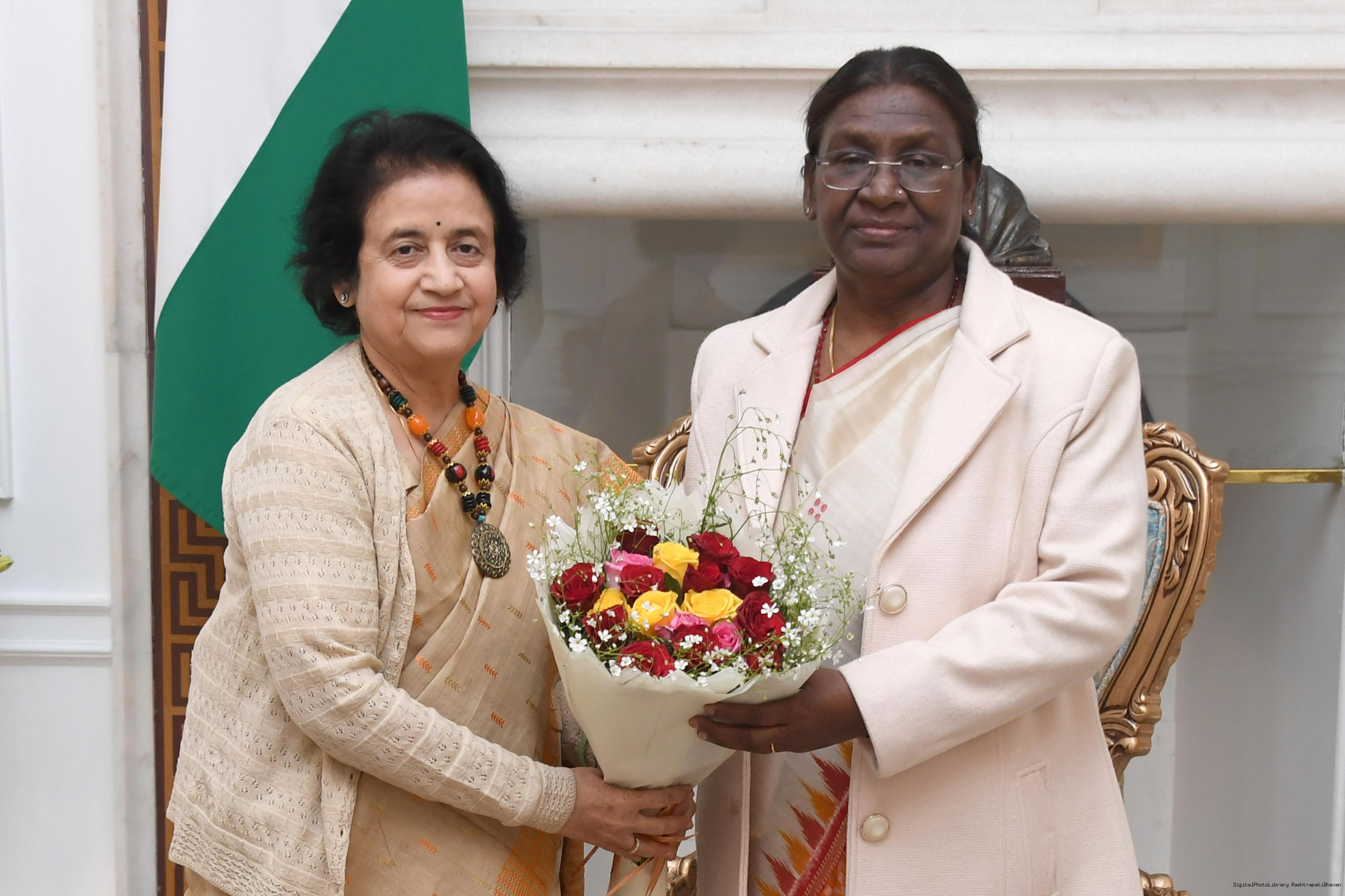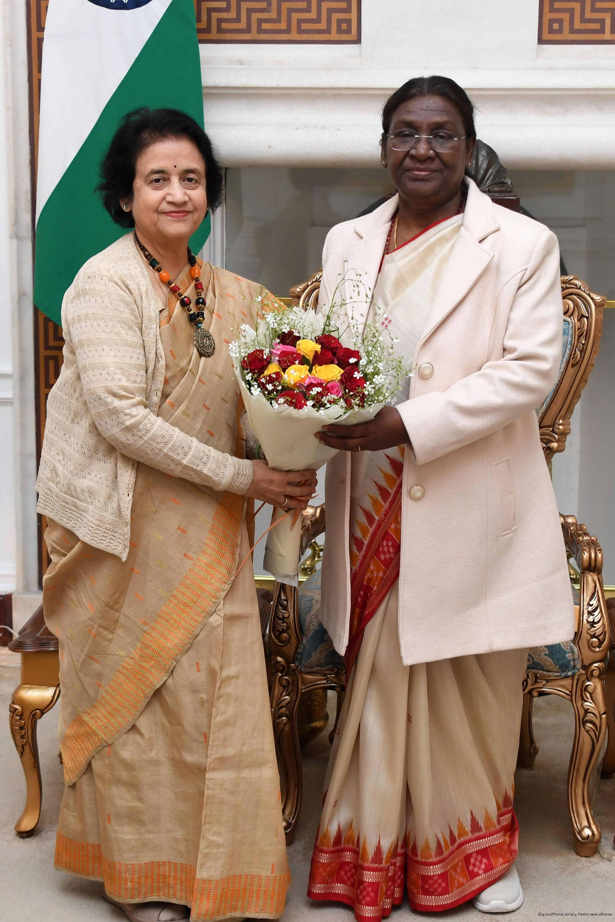 | Caption: | Prof. Meenu Singh, Executive Director, All India Institute of Medical Sciecnes Rishikesh meeting with the President of India, Smt. Droupadi Murmu at Rashtrapati Bhavan on January 10, 2024. |