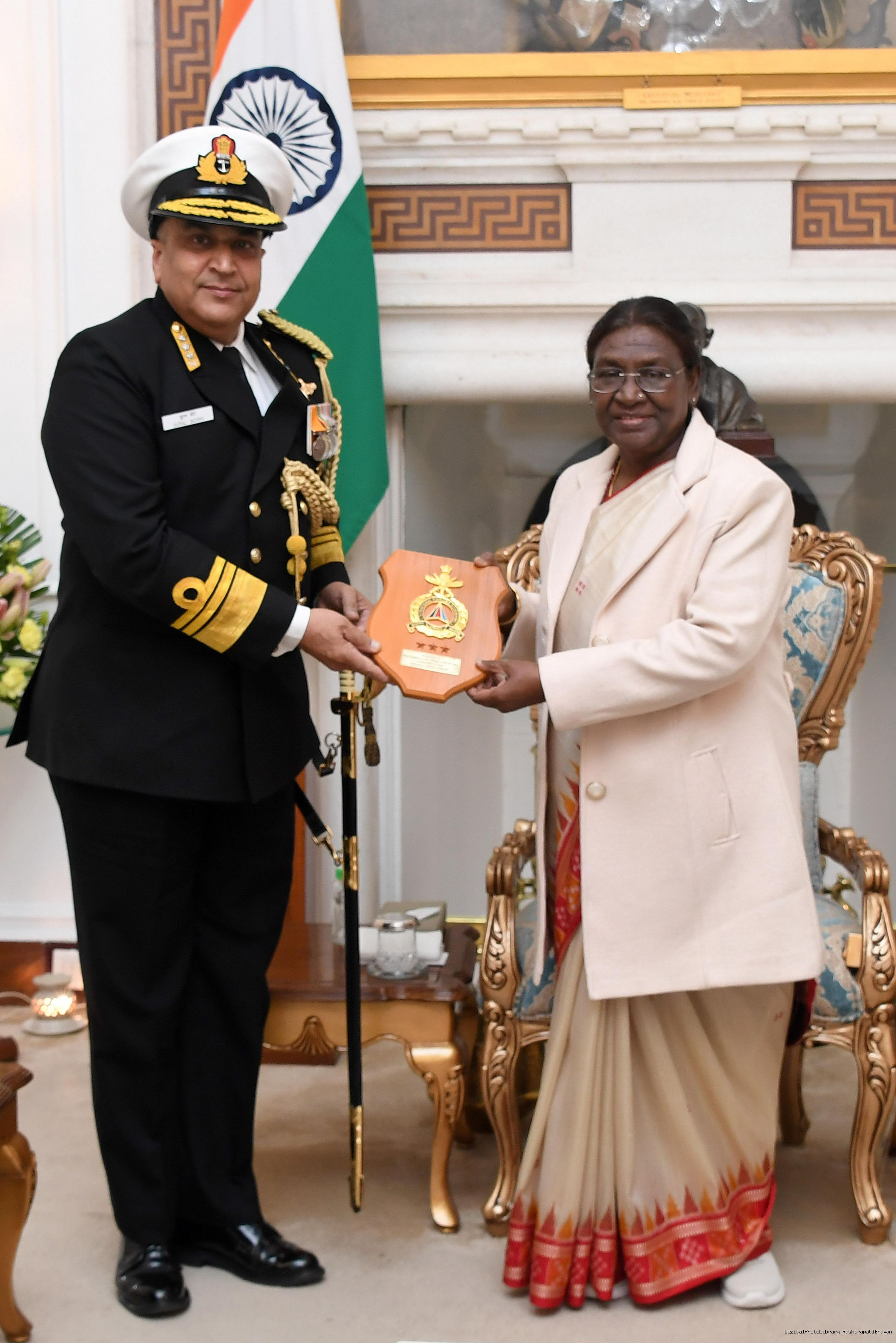 | Caption: | The Vice Admiral Suraj Berry, AVSM, NM, VSM, Comd of Strategic Forces Command along with other meeting with the President of India, Smt. Droupadi Murmu at Rashtrapati Bhavan on January 10, 2024. |