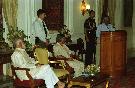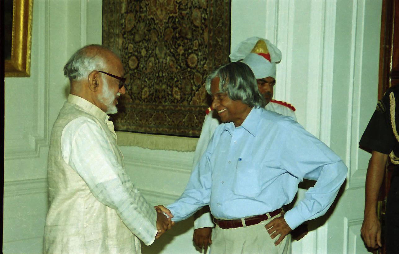 | Caption: | The President of India, Dr A P J Abdul Kalam receiving a copy of the LEAD (India) Book Titled ''Rio, Johannesburg and Beyond: India's Progress in Sustainable Development'' from Prof MGK at the Yellow Drawing Room of Rashtrapati Bhavan in New Delhi on Aug 04, 2002 |