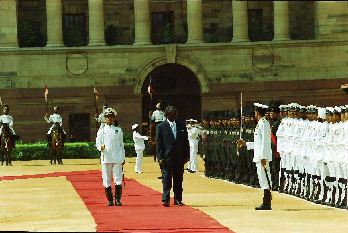 | Caption: | The President of India, Dr A P J Abdul Kalam at the Ceremonial Reception of the President of the Republic of Ghana, His Excellency Mr John Agyekum Kufuor and his wife Mrs Theresa Kufuor at the Forecourt of Rashtrapati Bhavan in New Delhi on Aug 05, 2002 |