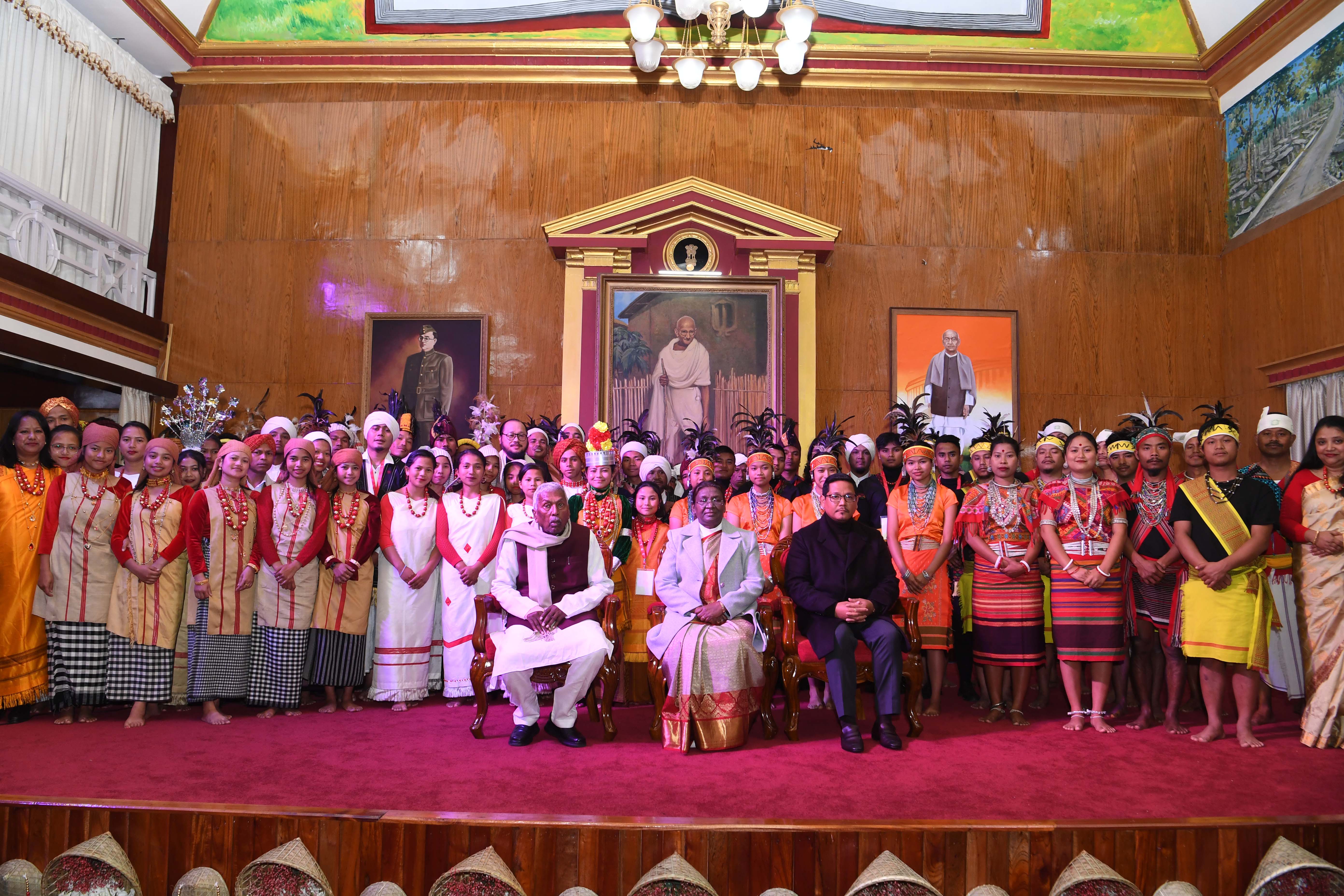 | Caption: | The President of India, Smt Droupadi Murmu attended a civic reception hosted in her honour by the Government of Meghalaya at Raj Bhavan, Shillong on January 16, 2024. |
