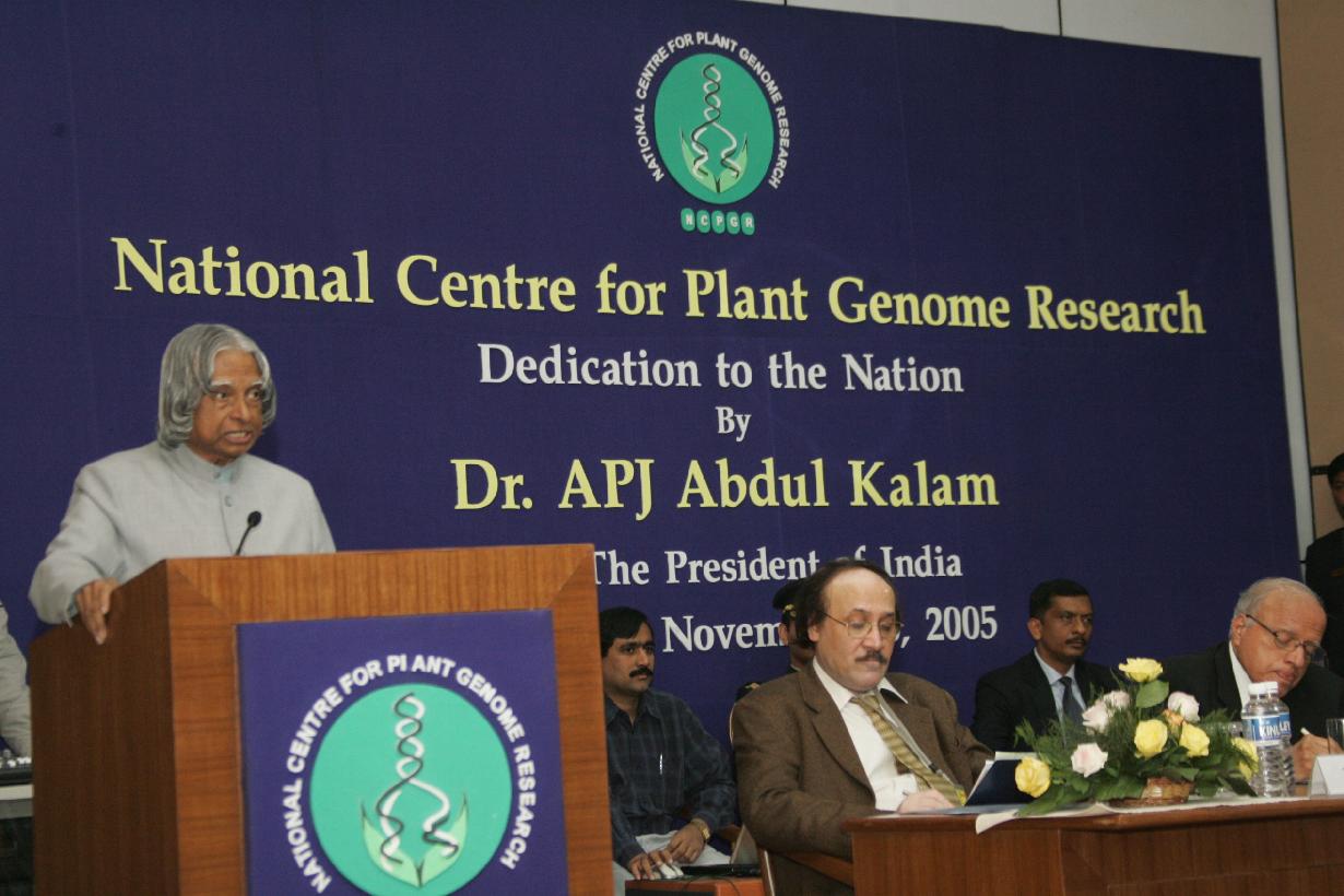 | Caption: | The President of India, Dr A P J Abdul Kalam dedicating the National Centre for Plant Genome Research (NCPGR) to the Nation at NCPGR, Aruna Asaf Ali Marg, JNU Campus in New Delhi on Nov 28, 2005 |