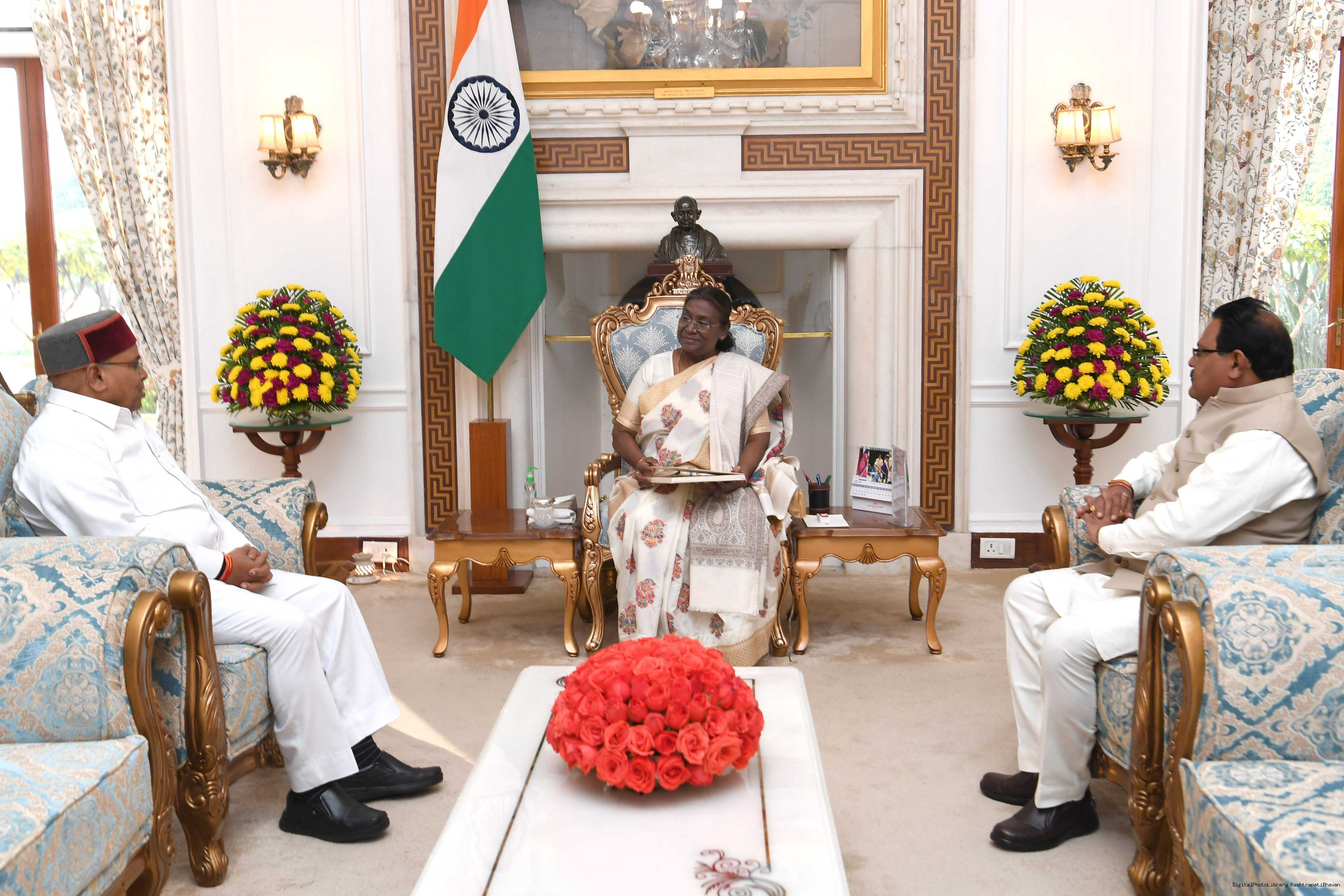 | Caption: | Shri Thaawarchand Gehlot, Governor of Karnataka along with others called on the President of India Smt Droupadi Murmu at Rashtrapati Bhavan on February 01, 2024. |