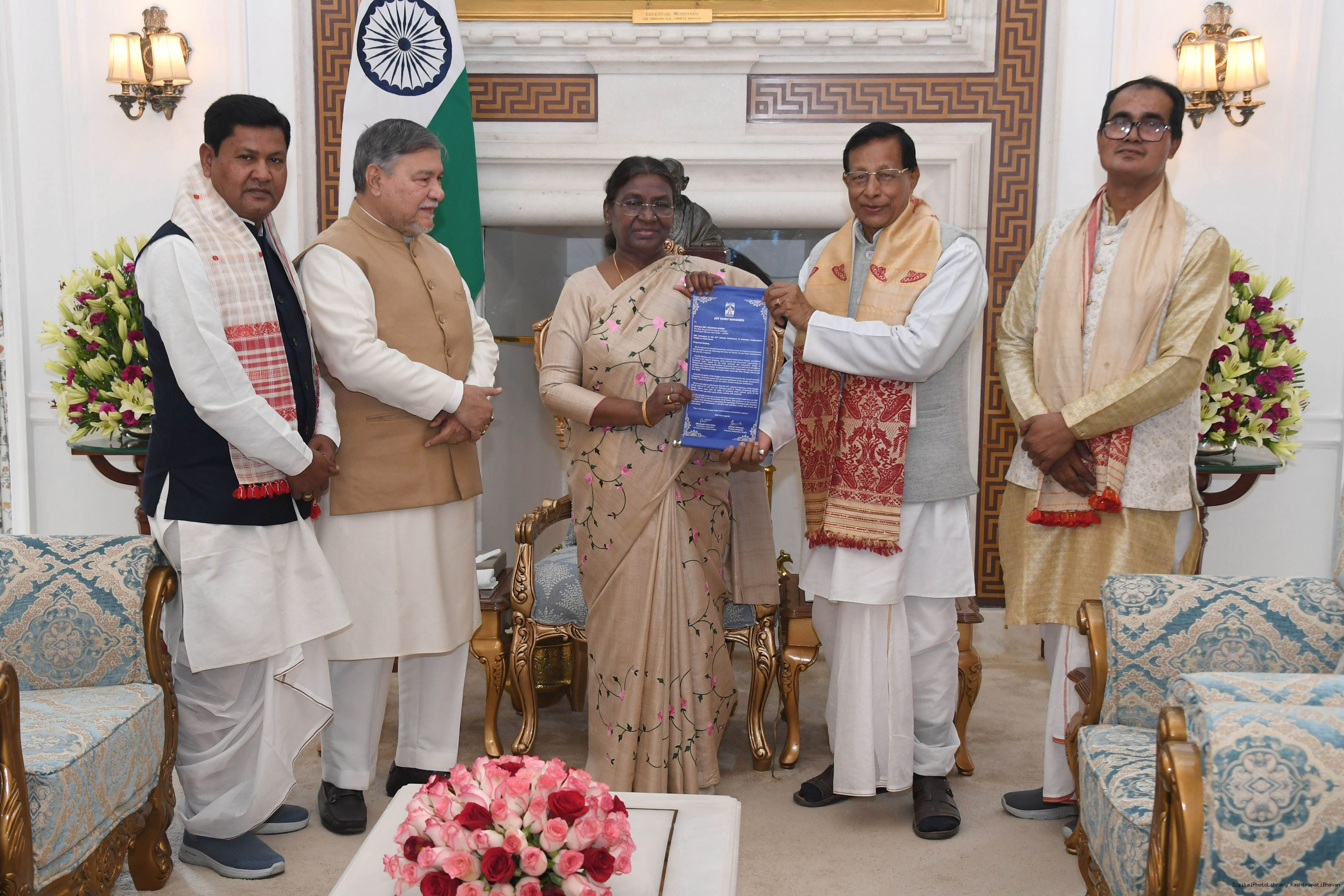 | Caption: | Shri Bhubaneswar Kalita, Member of Parliament (Rajya Sabha) along with others meeting with the President of India, Smt Droupadi Murmu at Rashtrapati Bhavan on February 5, 2024 |