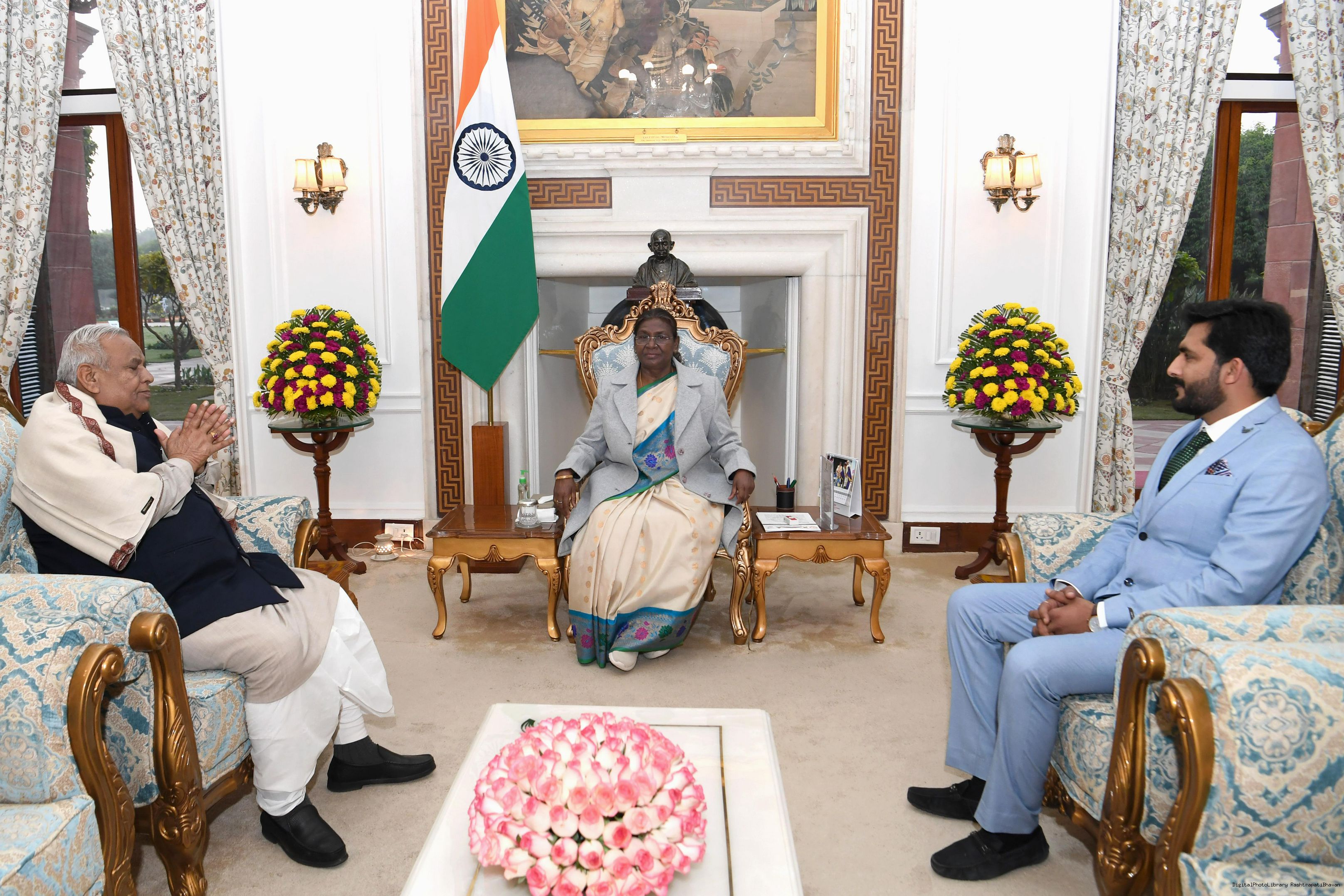 | Caption: | Shri Satyadev Pachauri, Member Parliament (Lok Sabha) along with Shri Rahul Saraswat meething with the President of India Smt. Droupadi Murmu at Rashtrapati Bhavan on February 2, 2024. |