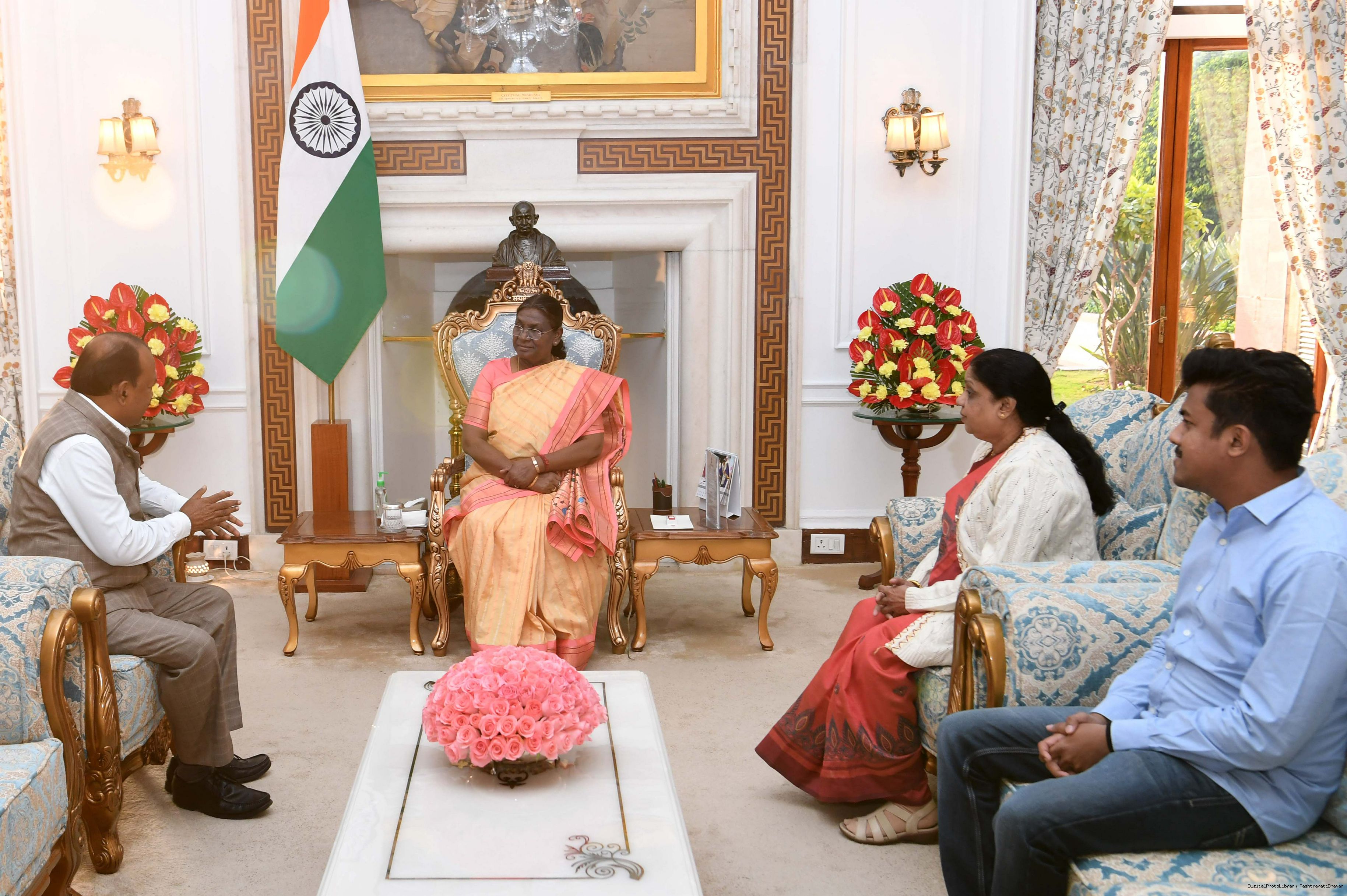 | Caption: | Shri Rajendra Gavit, Member of Parliament (Lok Sabha) from Palghar Constituency along with his family members meething with the President of India Smt. Droupadi Murmu at Rashtrapati Bhavan on February 7, 2024. |
