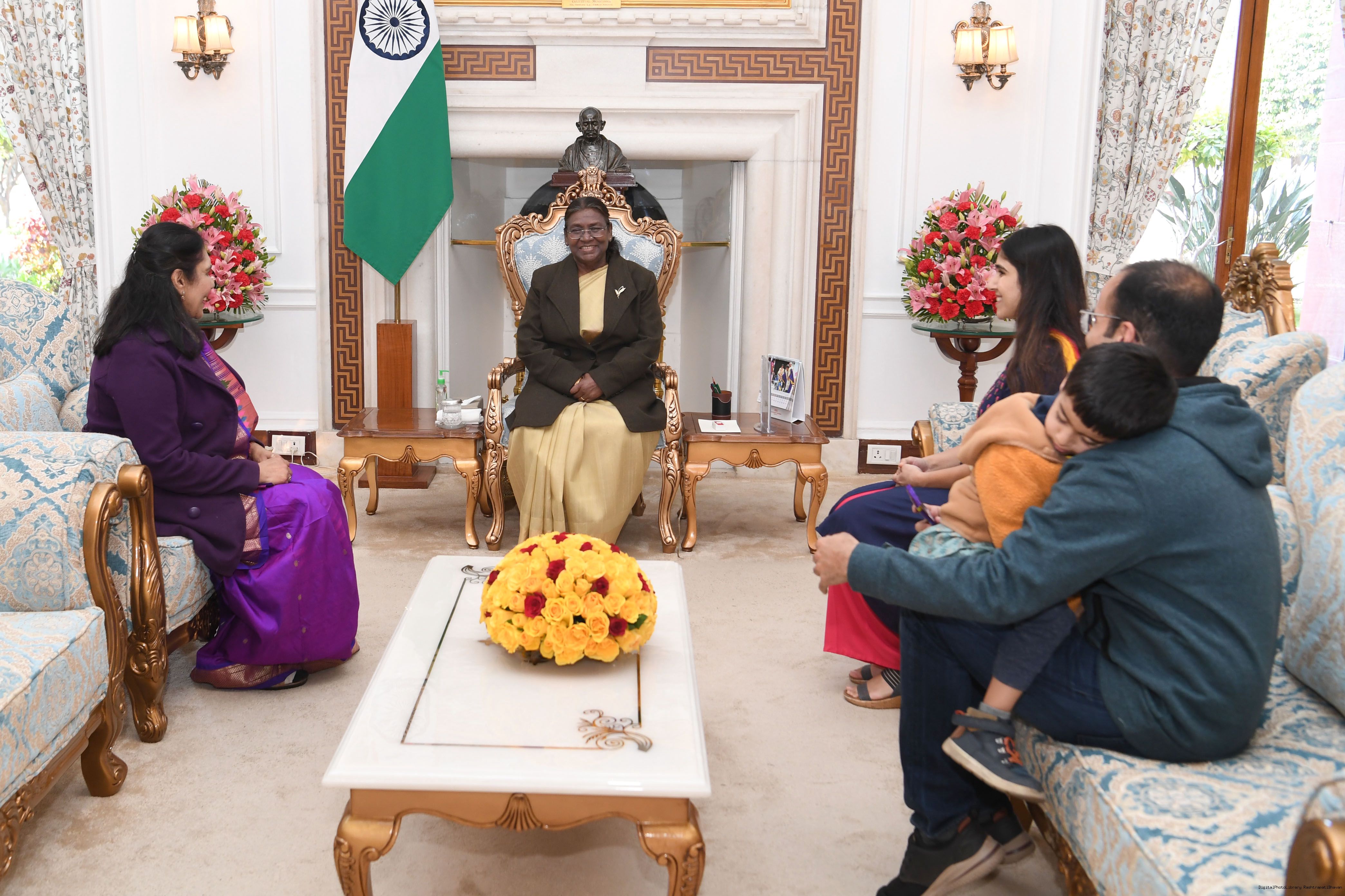 | Caption: | Dr. Niti Khunger, Professor and HOD, Consultant Dermatologist, VM Medical College, Safdarjung Hospital, New Delhi along with family members meething with the President of India Smt. Droupadi Murmu at Rashtrapati Bhavan on February 6, 2024. |