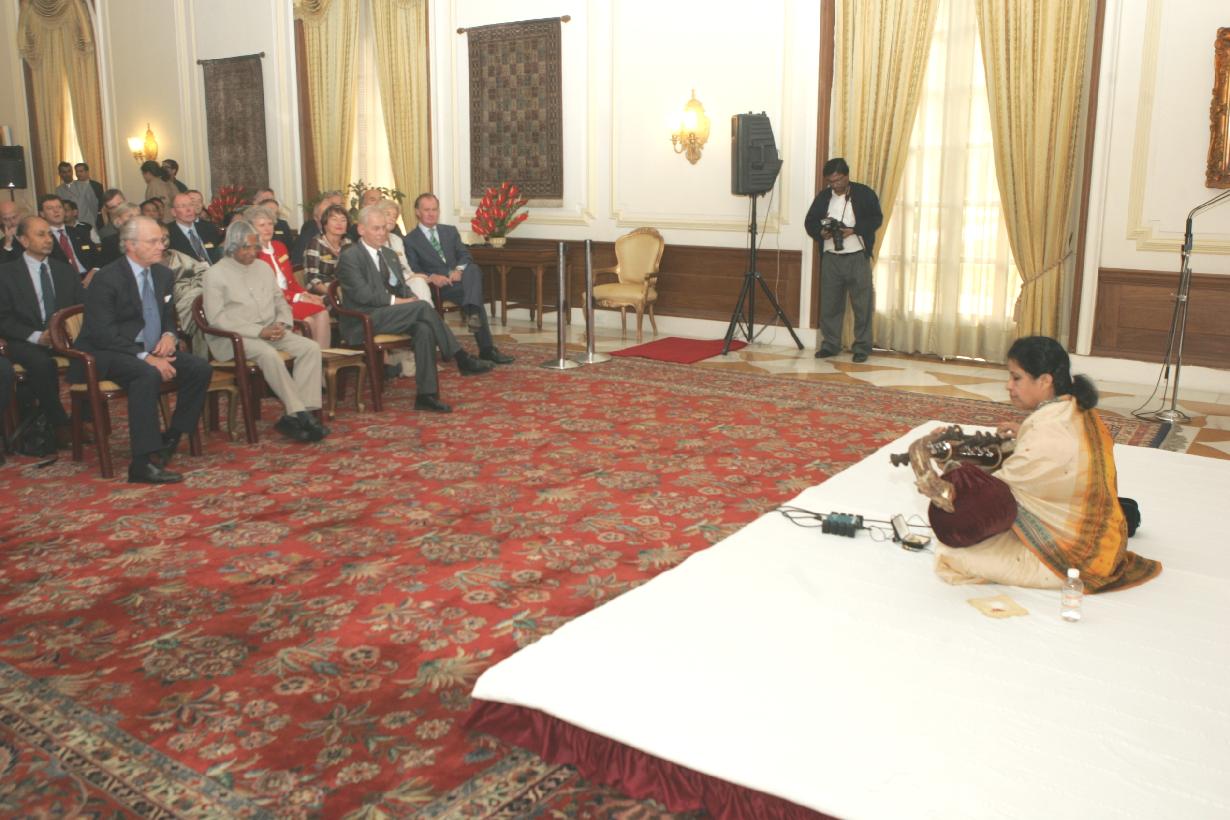| Caption: | The President of India, Dr A P J Abdul Kalam at the Saraswati Veena Recital by Ms Ranga Narayanan at Yellow Drawing Room of Rashtrapati Bhavan In New Delhi on Nov 24, 2005 |