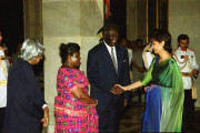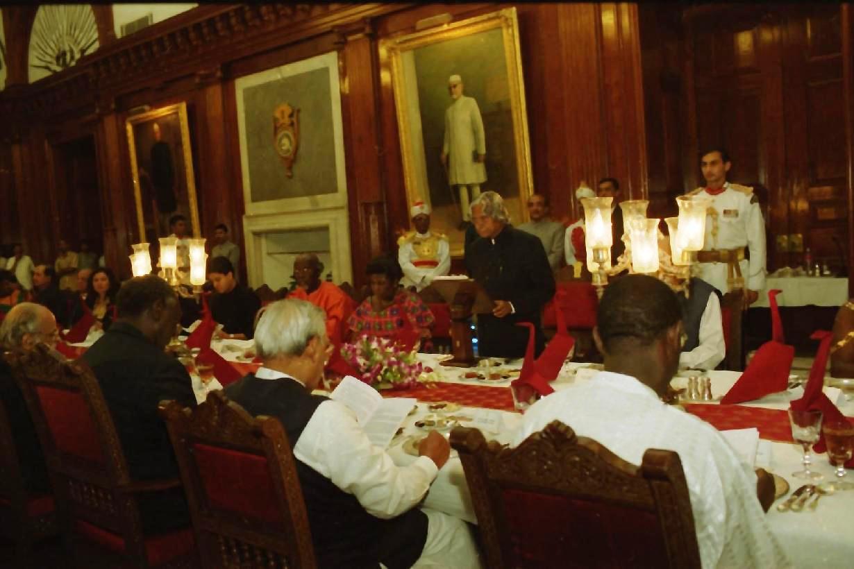 | Caption: | The President of India, Dr A P J Abdul Kalam at the Banquet Hosted in Honour of the President of the Republic of Ghana, His Excellency Mr John Agyekum Kufuor and his wife Mrs Theresa Kufuor at the Banquet Hall of Rashtrapati Bhavan in New Delhi on Aug 05, 2002 |