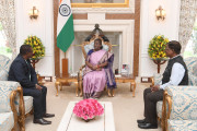 | Caption: | Shri Lakhan Hansdah, Village Tarana, Via-Jamda, Rairangpur, District Mayurbhanj along with other meeting with the President of India Smt Droupadi Murmu at Rashtrapati Bhavan on February 16, 2024. |