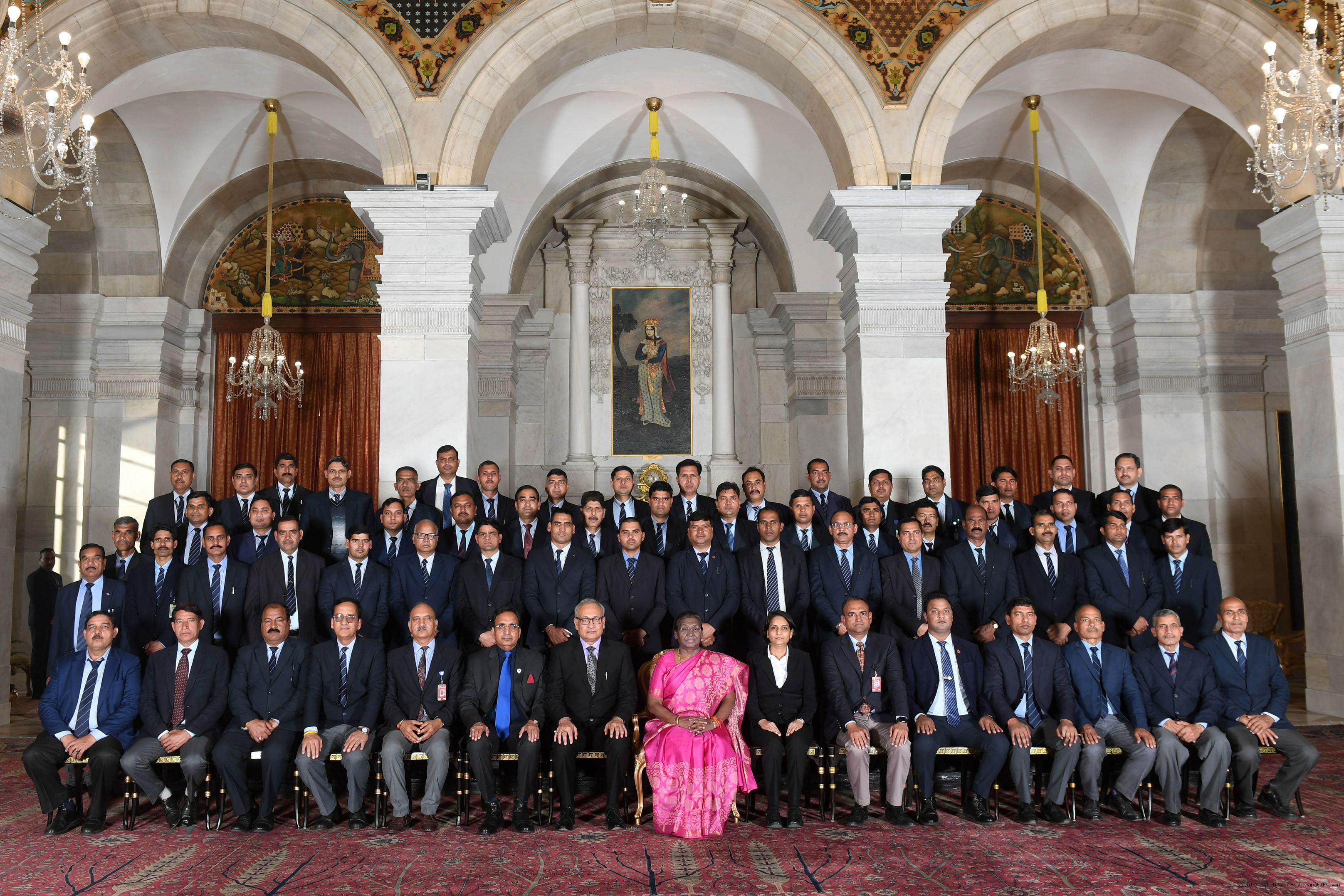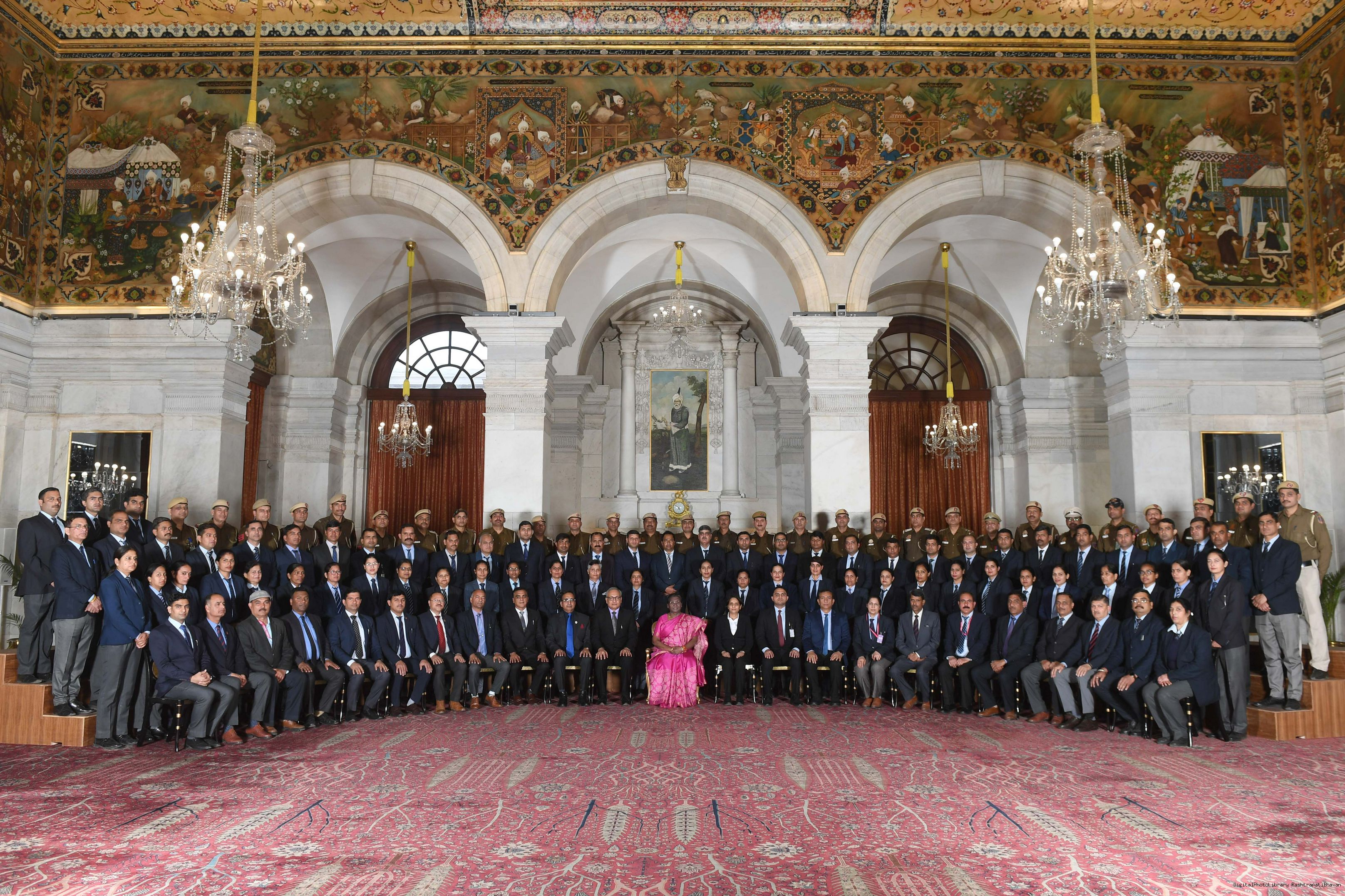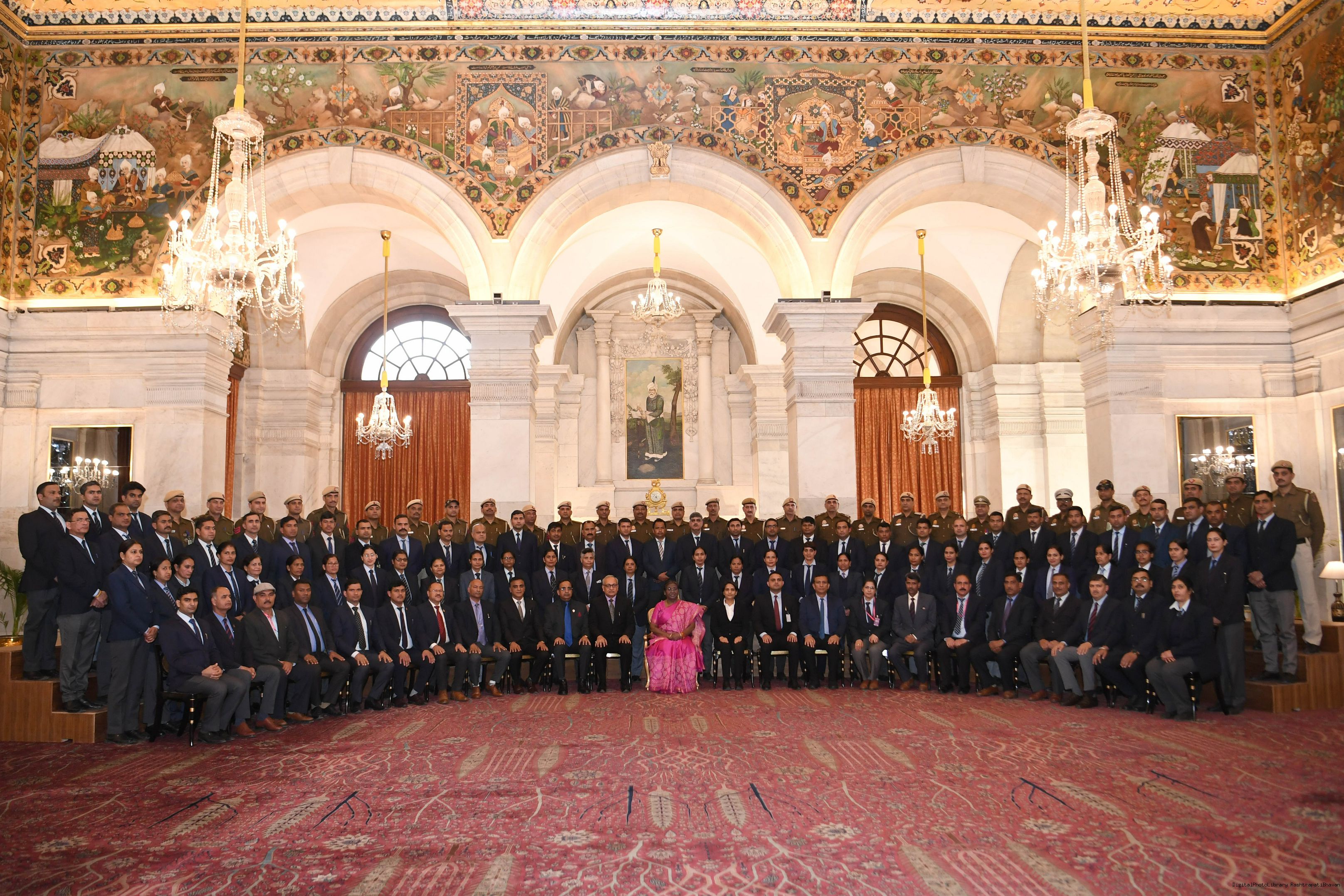 | Caption: | The President of India, Smt Droupadi Murmu posing for Group Photograph with 215 officers and personnel of Delhi Police posted in Rashtrapati Bhavan on the occasion of Delhi Police Raising Day on February 16, 2024. |