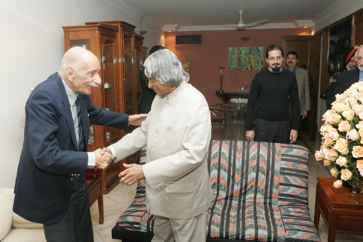 | Caption: | The President of India, Dr A P J Abdul Kalam visiting the Field Marshal SHFJ Manekshaw at P-8, 2nd Floor, Hauz Khas Enclave in New Delhi on Nov 24, 2005 |