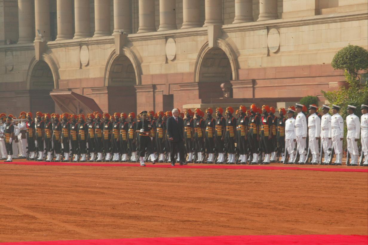 | Caption: | The President of India, Dr A P J Abdul Kalam at the Ceremonial Reception of the President of the Czech Republic, HE Mr Vaclav Klaus and his wife Mrs Livia Klausove at the Forecourt of Rashtrapati Bhavan in New Delhi on Nov 07, 2005 |