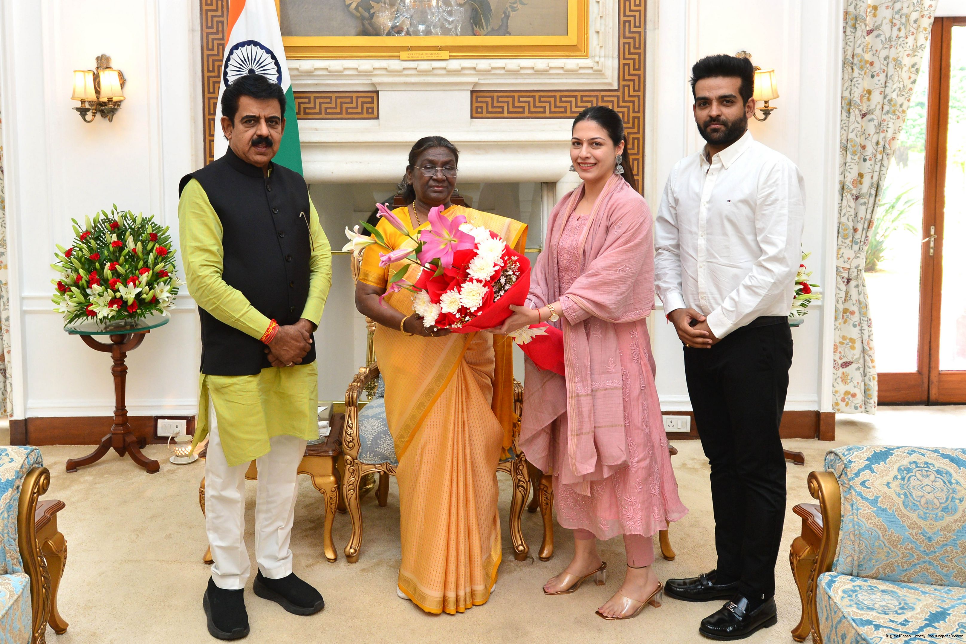 | Caption: | Shri Shankar Lalwani, MP (Lok Sabha) along with others meeting with the President of India Smt Droupadi Murmu at Rashtrapati Bhavan on March 6, 2024. |