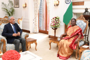 | Caption: | Shri Pankaj Kumar Singh (IPS 88 RJ), Deputy National Security Adviser (Internal Affairs), NSCS meeting with the President of India Smt Droupadi Murmu at Rashtrapati Bhavan on March 7, 2024. |