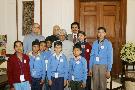| Caption: | The President of India, Dr A P J Abdul Kalam with the Children and Officials from National Foundation for Communal Harmony to pining a Flag on the occasion of their Flag Day at Rashtrapati Bhavan in New Delhi on Nov 25, 2005 |
