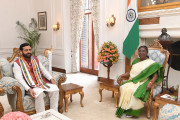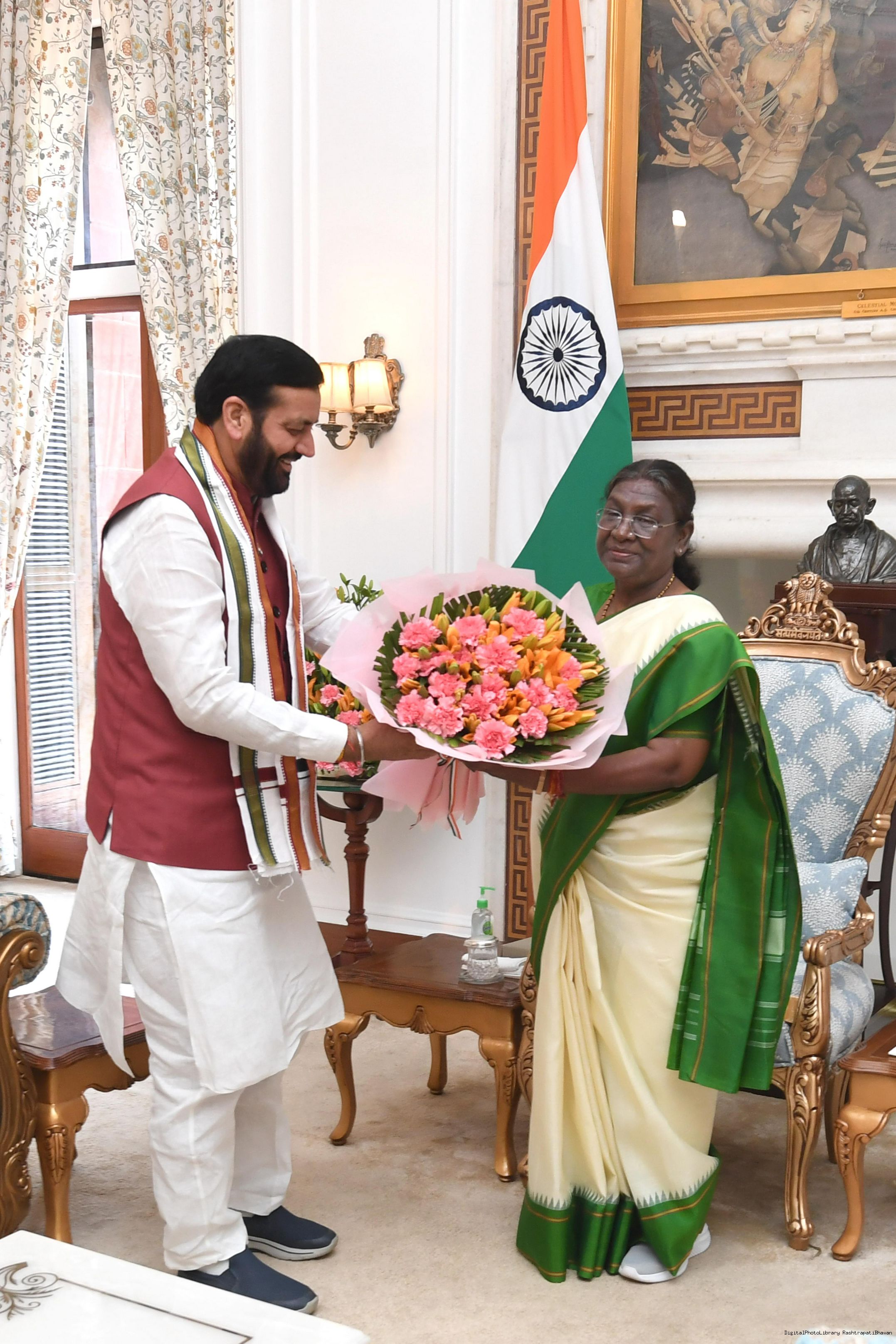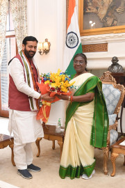 | Caption: | The Chief Minister of Haryana, Shri Nayab Singh called on the President of India Smt Droupadi Murmu at Rashtrapati Bhavan on March 14, 2024. |