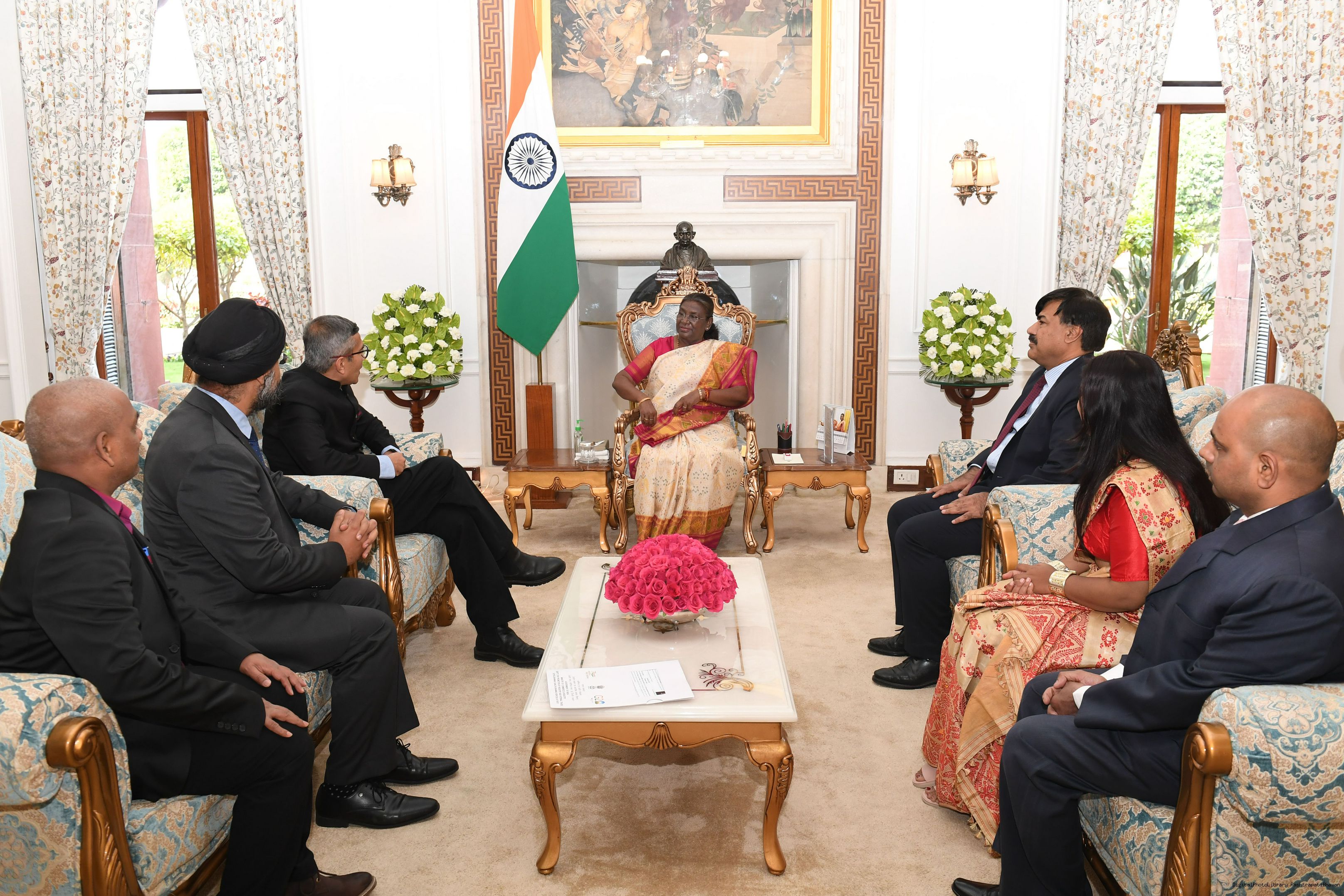 | Caption: | Shri Rajesh Kumar Singh, Secretary, Department for Promotion of Industry, Internal Trade (DPIIT), Ministry of Commece Industry, Govt of India along with others meeting with the President of India Smt Droupadi Murmu at Rashtrapati Bhavan on March 19, 2024. |