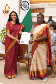 | Caption: | The Ambassador-designate of India to Italy, Ms. Vani Sarraju Rao meeting with the President of India Smt Droupadi Murmu at Rashtrapati Bhavan on March 19, 2024. |