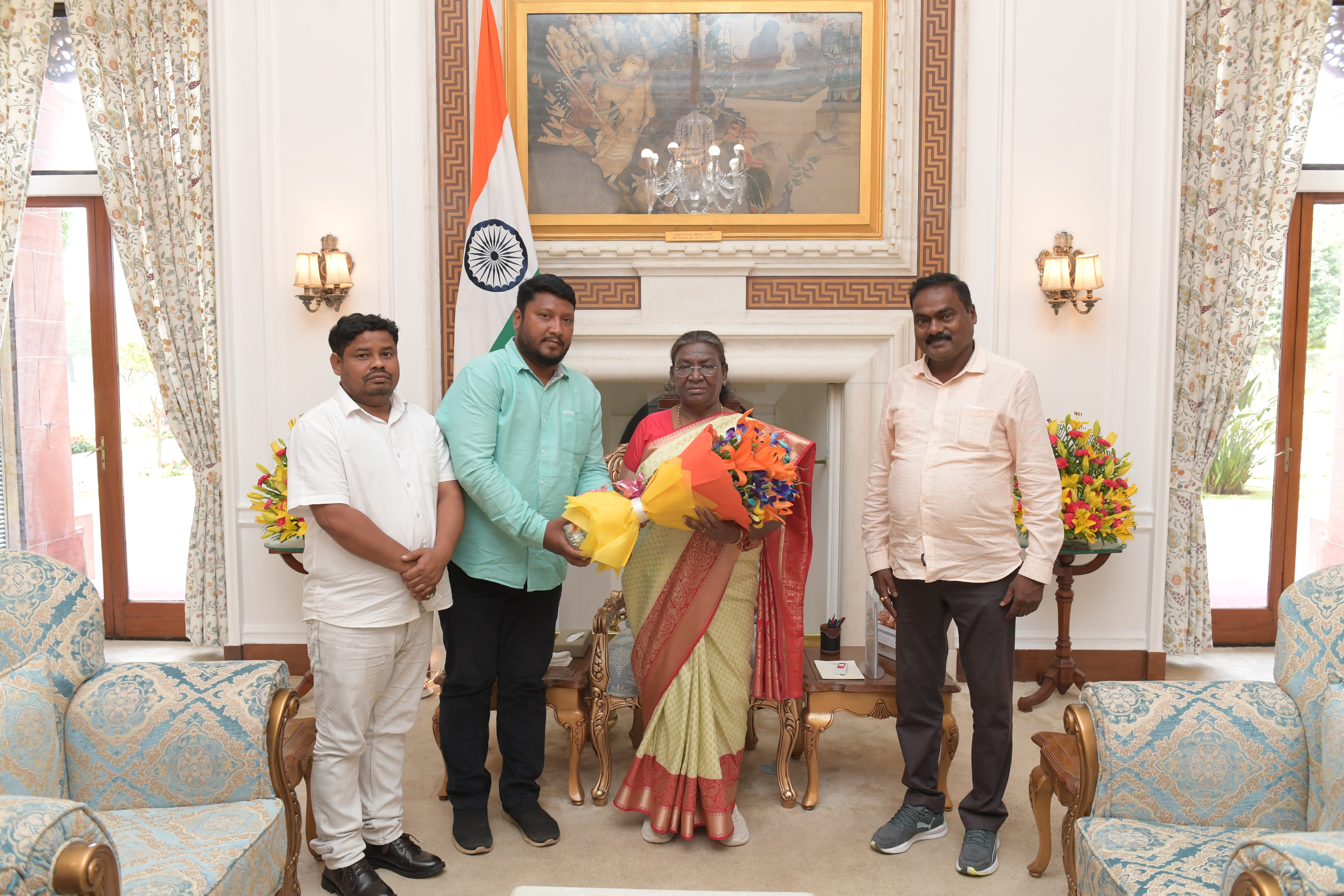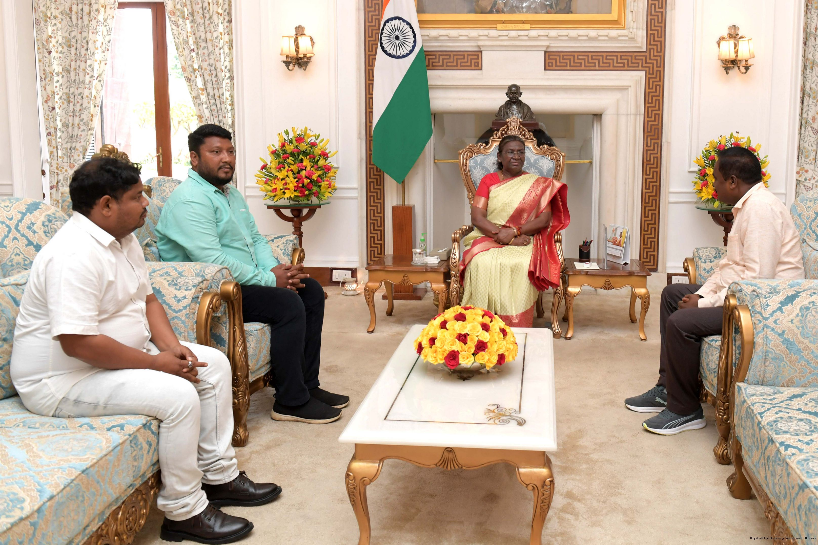 | Caption: | Shri Rakesh Singh along with others meeting with the President of India Smt Droupadi Murmu at Rashtrapati Bhavan on March 22, 2024. |