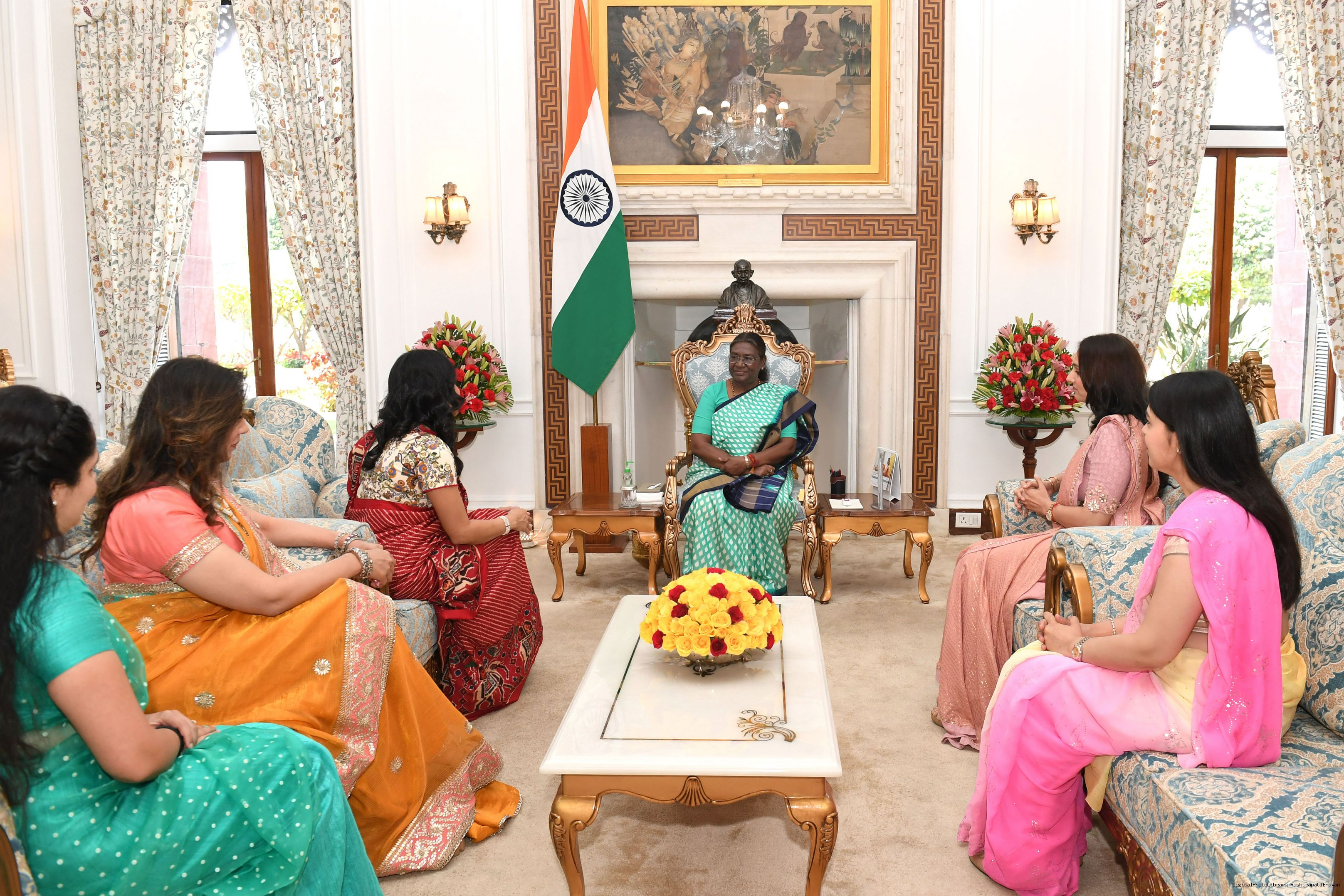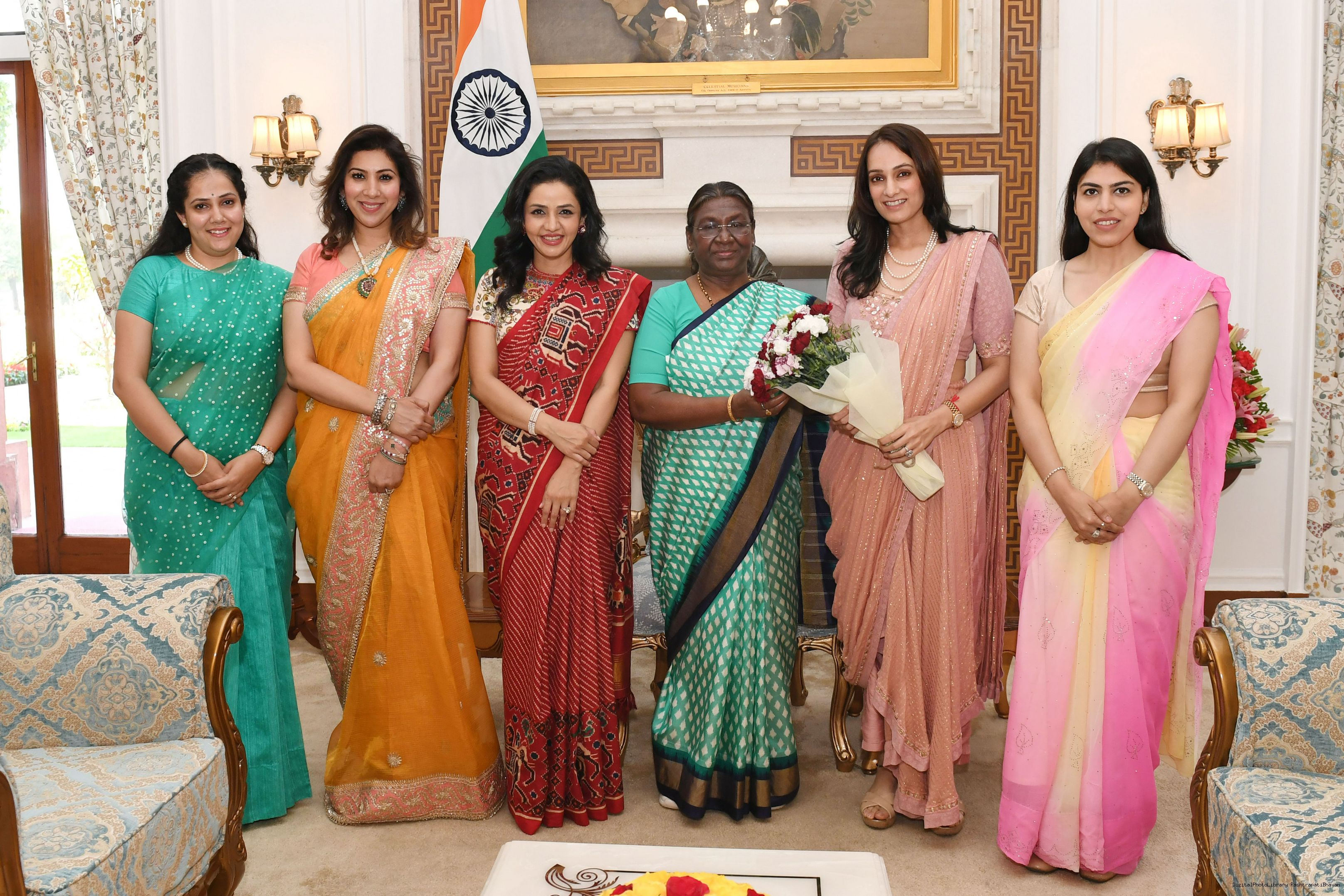 | Caption: | Ms. Divya Jain, Chairpersons, Young FICCI's Ladies Organisation (YFLO) along with others meeting with the President of India Smt Droupadi Murmu at Rashtrapati Bhavan on March 26, 2024. |
