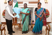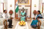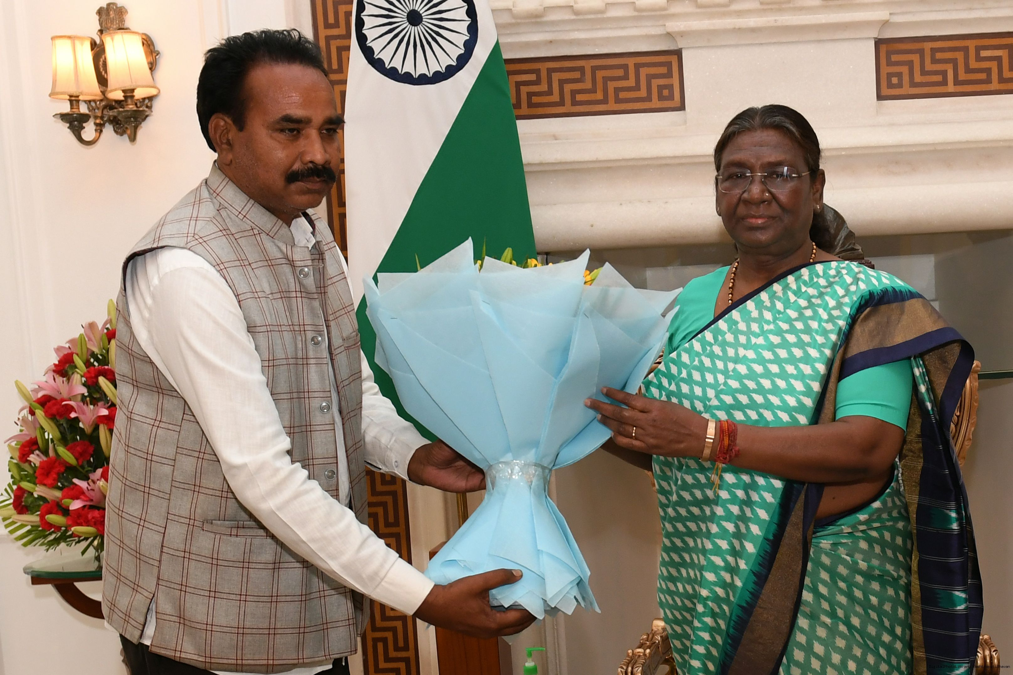| Caption: | Shri Bhadav Hansdah along with others meeting with the President of India Smt Droupadi Murmu at Rashtrapati Bhavan on March 26, 2024. |