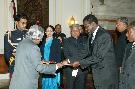 | Caption: | The High Commissioner-Designate of the Republic of Namibia to India, HE Mr Marten N Kapewasha presenting his credentials to the President of India, Dr A P J Abdul Kalam at the Yellow Drawing Room of at Rashtrapati Bhavan in New Delhi on Dec 08, 2005 |